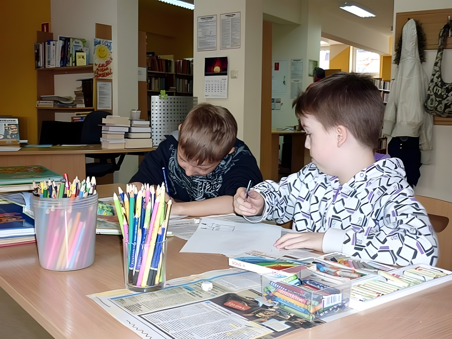 Niektórzy artyści zawzięcie pracowali w czytelni, korzystając z bogatych zbiorów biblioteki. Bajek mamy ponad 700 woluminów.