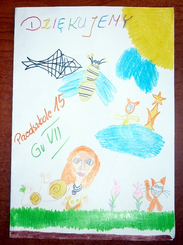 Dzieci obdarowały nas własnoręcznymi rysunkami, a my w rewanżu wręczyłyśmy grupie książeczki oraz jubileuszowe karty pocztowe z Koszalina.