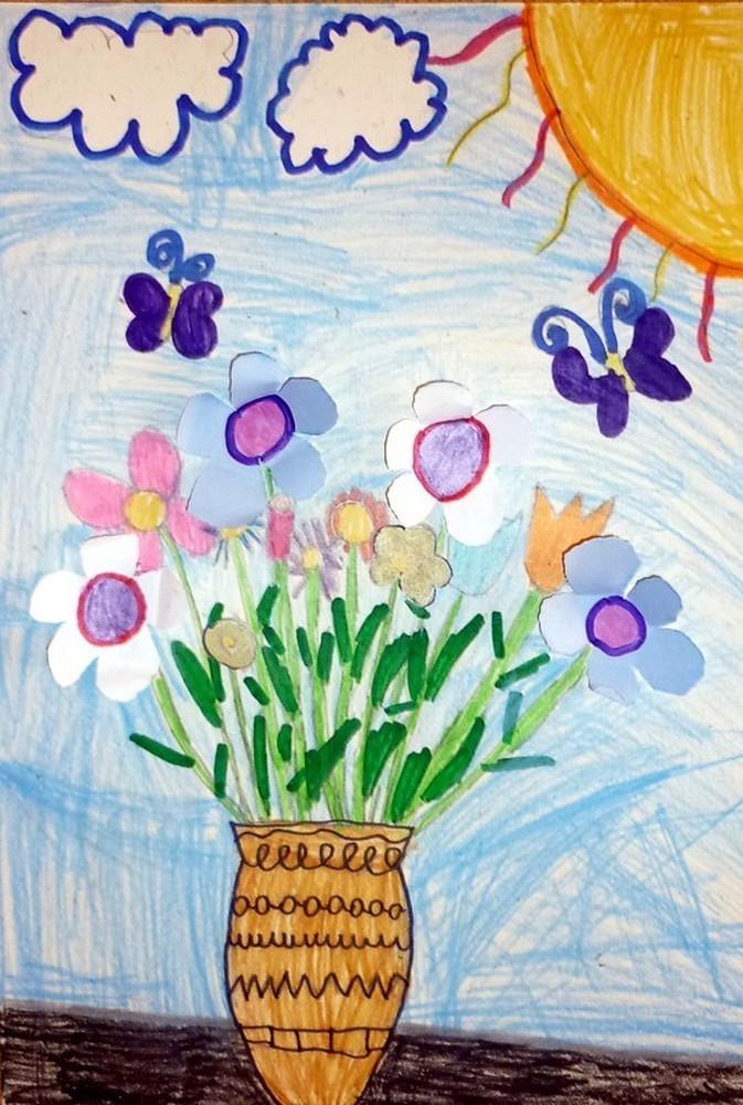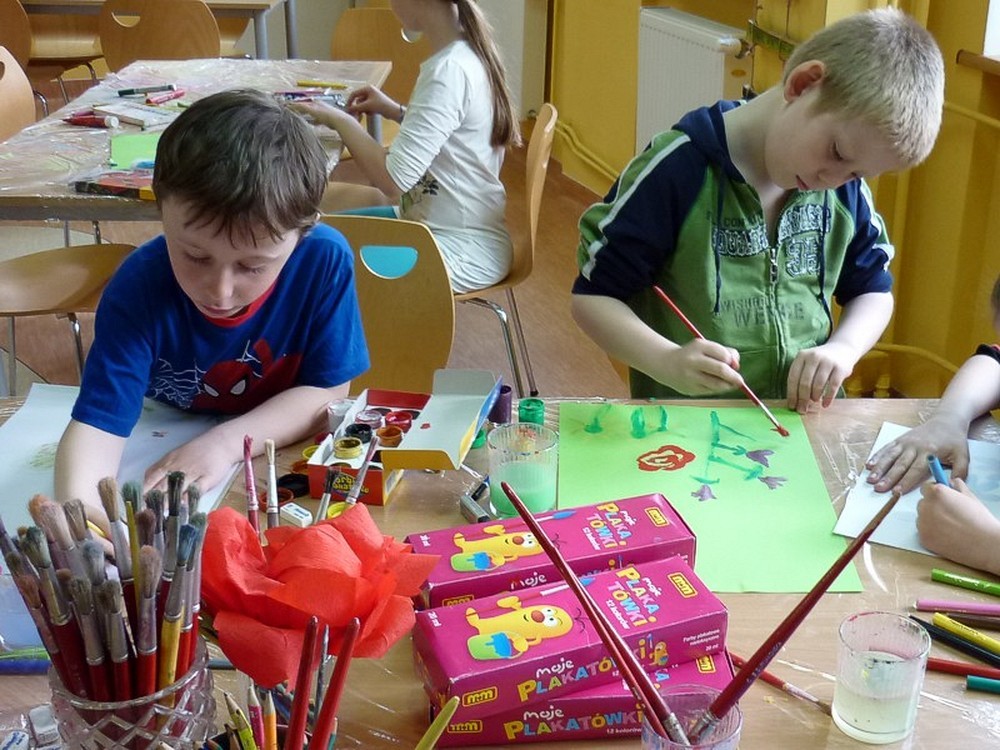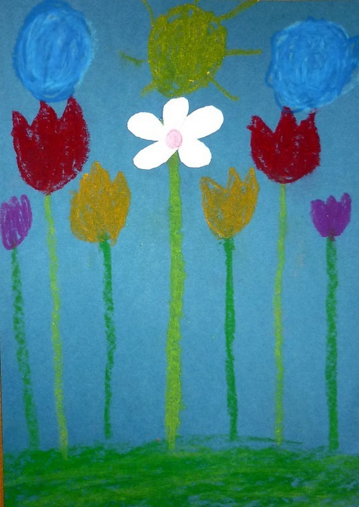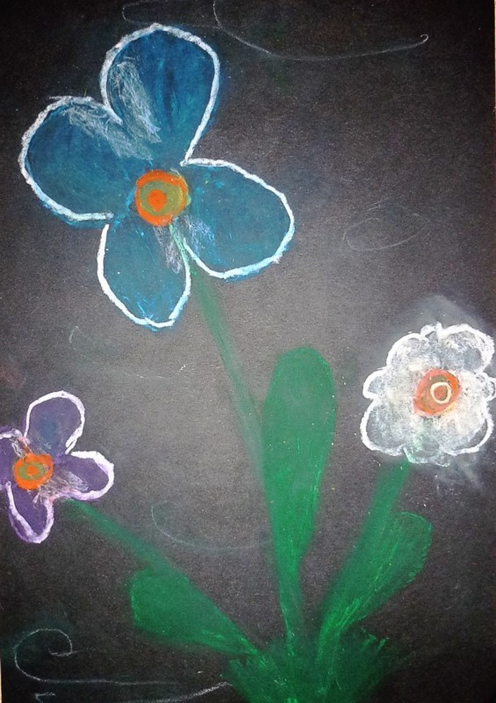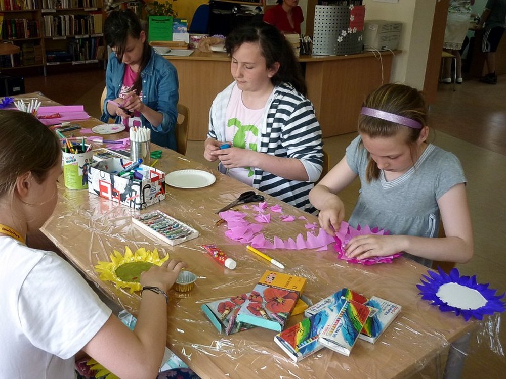Ten i wiele innych pięknych KWIATOWYCH OBRAZÓW powstało w naszej bibliotece na zajęciach plastycznych dla dzieci w dniach 8 i 9 maja.