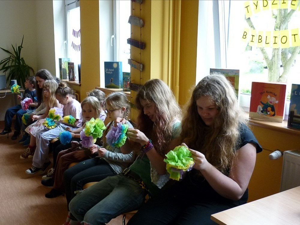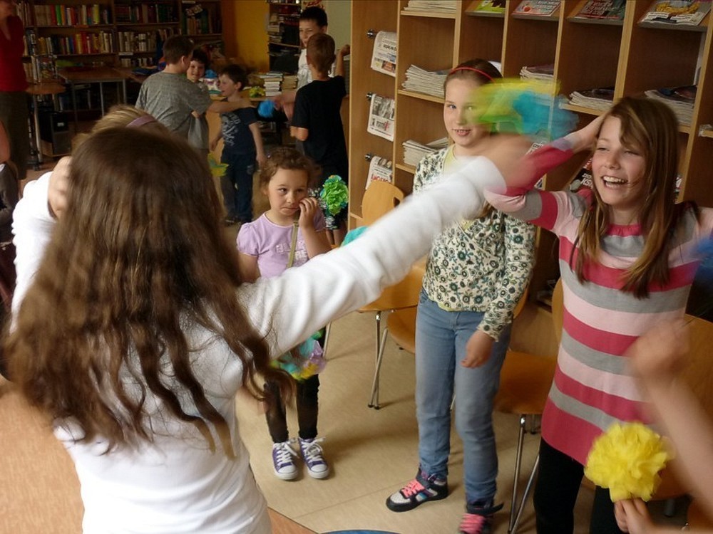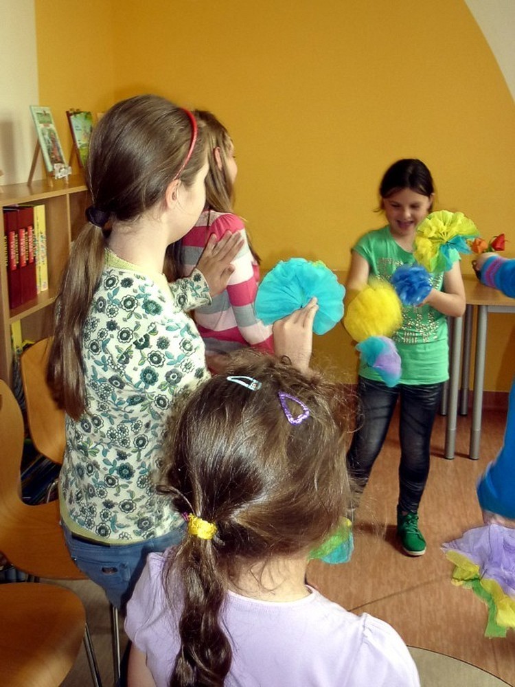 10 maja w naszej bibliotece "zakwitło" mnóstwo pięknych kwiatów. Wykonały je MOLIKI, które brały udział także w zabawach z chustą, improwizacjach tanecznych i teatralnych.