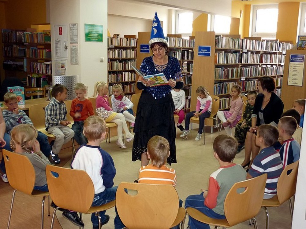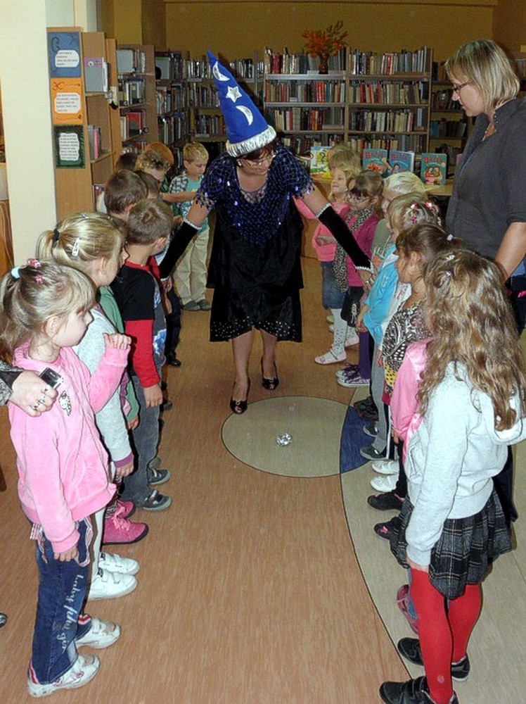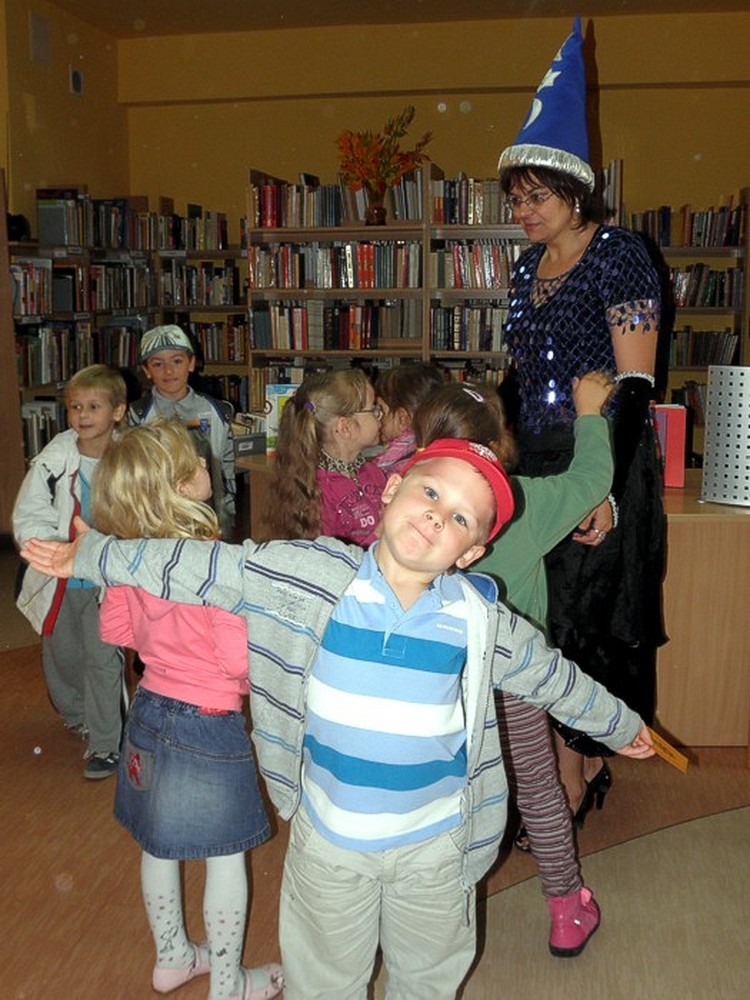 Na pierwsze spotkanie z Książkową Wróżką (29 września) przybyły sześciolatki z grupy 9 z Przedszkola nr 15 w Koszalinie. Powitanie z dziećmi było niecodzienne... Powiedzmy szczerze - bardzo hałaśliwe, ale takie było życzenie Wróżki. Na wstępie dzieci dowiedziały się, że kto na swojej drodze spotka Książkową Wróżkę, wkrótce polubi książki. A jak je polubi, to może od razu przychodzić na spotkania klubu Molika Książkowego, który działa w... naszej bibliotece.