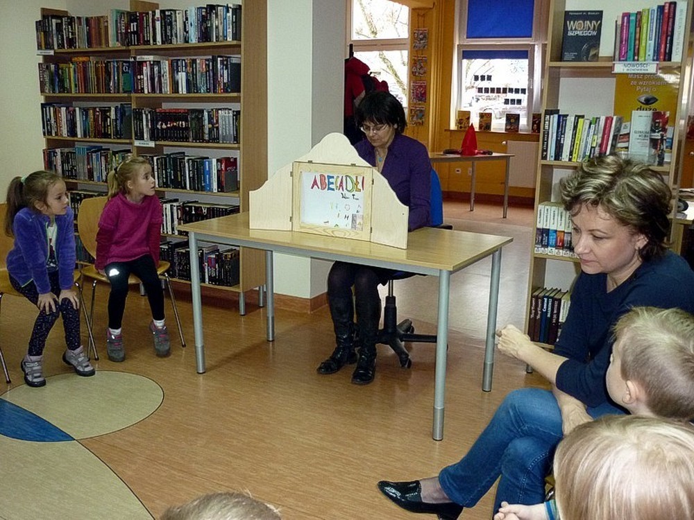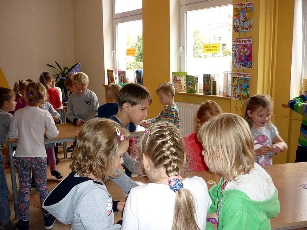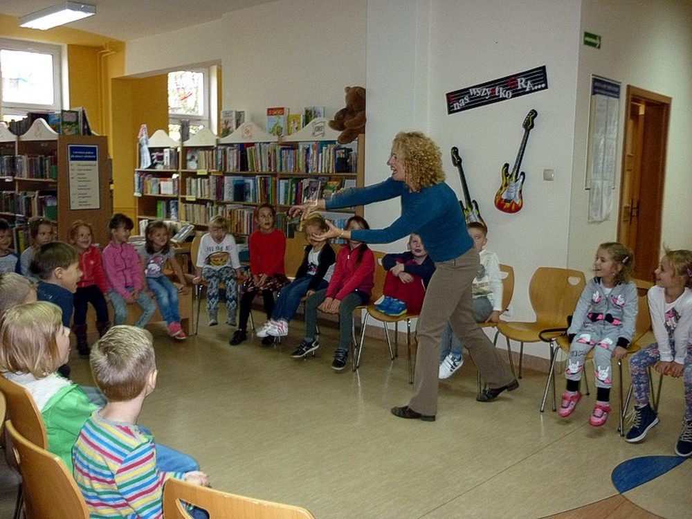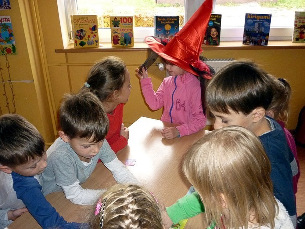 Dzieci przybyły do BAŚNIOWEJ KRAINY w poszukiwaniu zaginionych liter Pana Alfabeta. Zanim trafiły na odpowiedni trop, poznały fascynujące wierszyki i opowiadania, oraz obejrzały teatrzyk Kamishibai. Spotkanie zakończyliśmy startem załogowym kosmicznej rakiety z kosmodromu Biblioteka na orbitę szkolną.