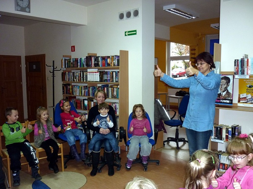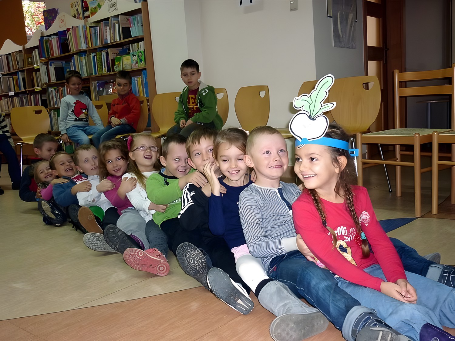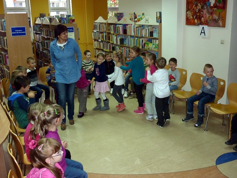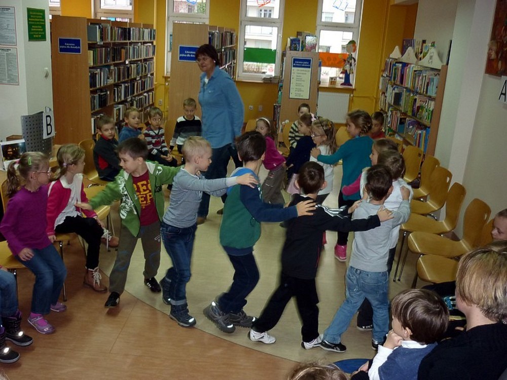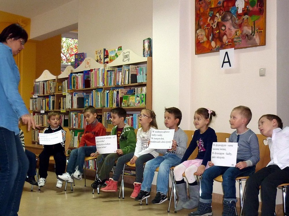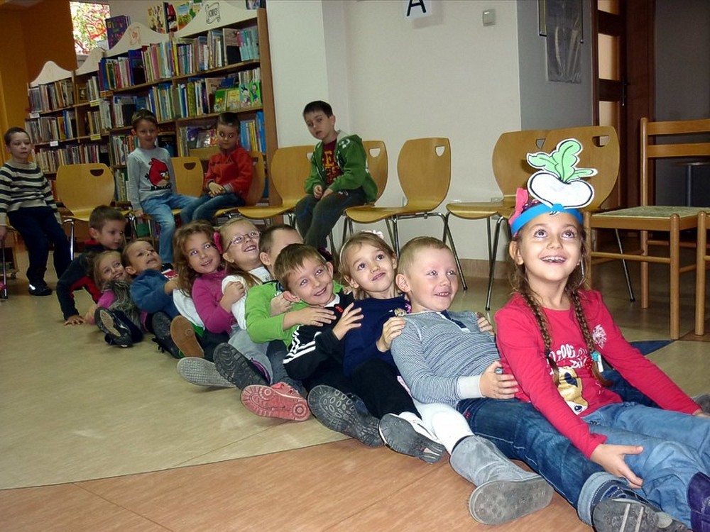 Dnia 5 listopada gościliśmy zerówkowiczów z Przedszkola nr 15 w Koszalinie. Przybyli do biblioteki na spotkanie z cyklu "LOKOMOTYWĄ W ŚWIAT JULIANA TUWIMA". Nasza podróż po literaturze miała charakter edukacyjno-rozrywkowy. Dzieci gotowały obiad, śpiewały w chórze, uczyły się pisać, zagrały w scence z RZEPKĄ w roli głównej, a na koniec rozwiązały tuwimowy quiz.