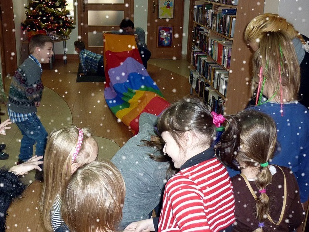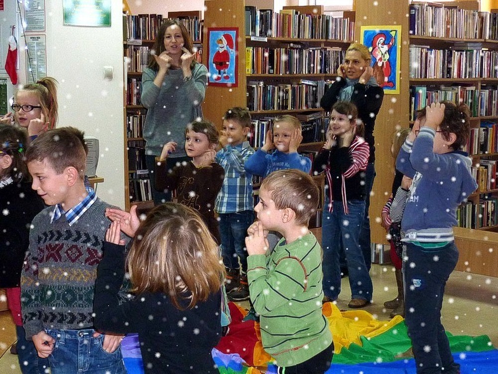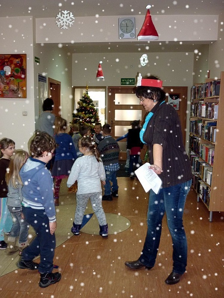 W czwartkowe przedpołudnie - 11 grudnia - na mikołajkowe spotkanie przybyły sześciolatki z Integracyjnej Szkoły Podstawowej nr 21 w Koszalinie. Wesoła grupa bardzo aktywnie uczestniczyła we wszystkich naszych propozycjach. Przede wszystkim - było czytanie zabawnej historyjki Wiesława Drabika "Wielka zadyma z Mikołajem". Zainspirowani książkową przygodą zrobiliśmy WIELKĄ ZADYMĘ W BIBLIOTECE!