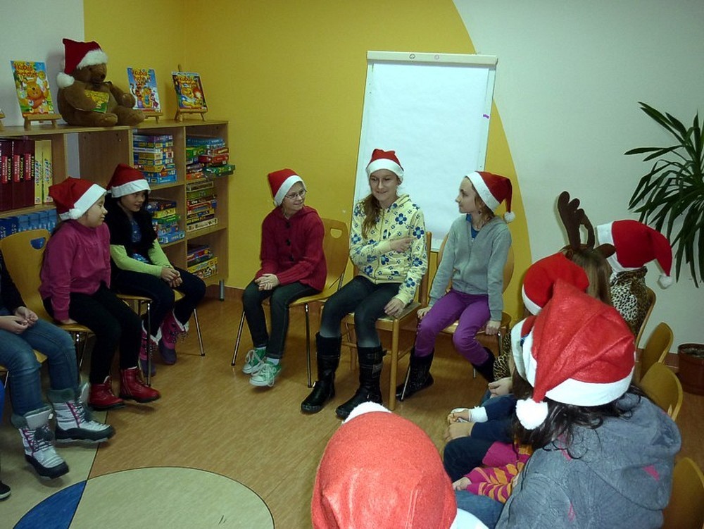 6 grudnia w naszej czytelni odbyło się mikołajkowe spotkanie molików książkowych. Tym razem miłośnicy książek zachęcani byli przez nas do czytania najpiękniejszych baśni i opowieści świątecznych. Rozmawialiśmy o św. Mikołaju. Dużo informacji o tym najsłynniejszym świętym znaleźliśmy w książce księdza M. Malińskiego "Opowiadania o nadziei". W części kreatywnej uruchomiliśmy "Fabrykę Ozdób Choinkowych" oraz wzięliśmy udział w licznych grach i konkursach. Czekając na przybycie Mikołaja bawiliśmy się wesoło, tak, że nikt nie zauważył, kiedy ten podrzucił nam prezenty. Naszego "Mikołaja" sponsorowała Rada Osiedla "Bukowe" w Koszalinie.