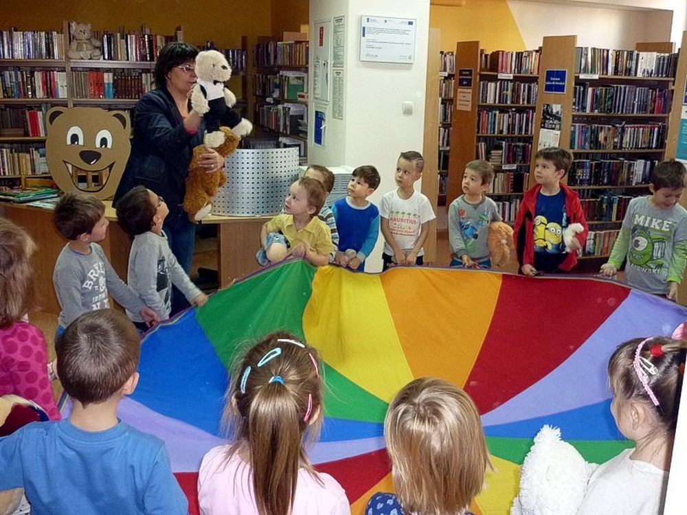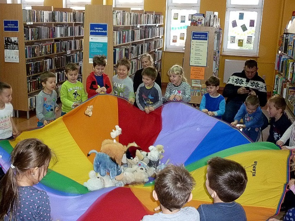 Dzieci wysłuchały opowieści pt. ŚWIĘTA PANA MISIA (K.Wilson), poznały książeczki z MISIOWEJ PÓŁECZKI (ekspozycja w czytelni) i wzięły udział w licznych atrakcjach przygotowanych na tę okoliczność.