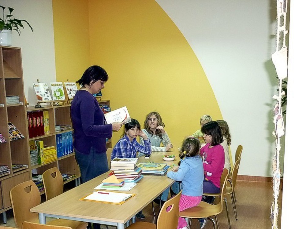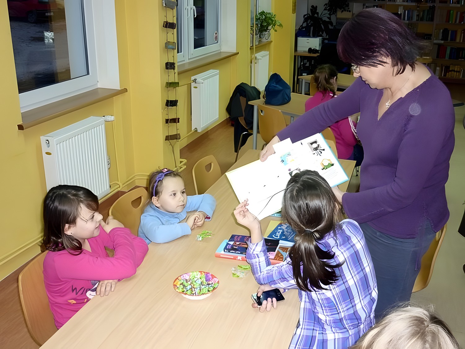 Jesienna aura, ciemno za oknem, a w bibliotece wesoło i kolorowo, tak można by opisać atmosferę jaka panowała podczas zajęć z dziećmi.