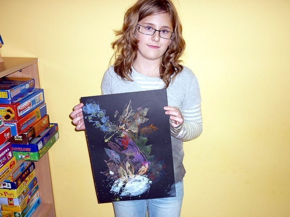 Farby, pędzle, jesienne liście... Tyle trzeba było by moliki wyczarowały prześliczne obrazy.