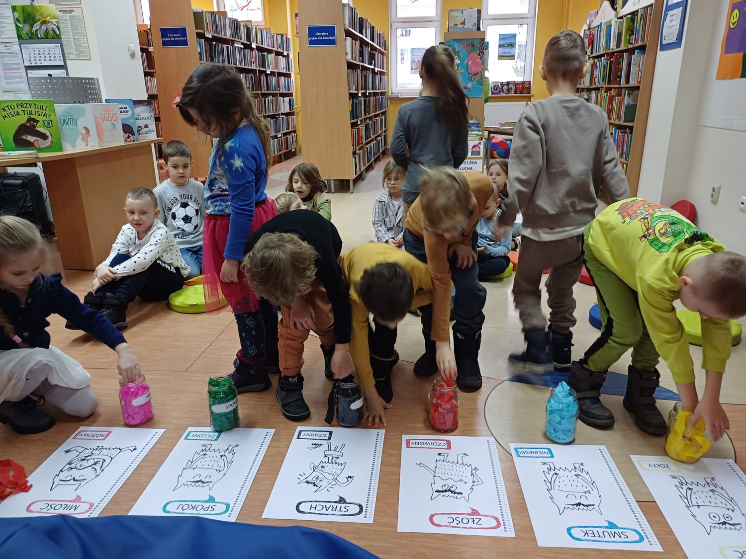 Wczoraj, pomimo deszczowej pogody zawitały do nas MUZYLKI z Przedszkola nr 37 w Koszalinie. Jeśli myślicie, że były to spokojne zajęcia - nic bardziej mylnego Miałyśmy wrażenie, że przez bibliotekę przemknął chiński MAGLEV z Kolorowym Potworem za sterami lokomotywy i przedszkolakami w wagonie Głośne czytanie, kalambury, testowanie emocjonalnej wrażliwości pań przedszkolanek oraz ekspresowe porządkowanie poplątanych emocji Kolorowego Potwora szczelnie wypełniły nasze szalone i kolorowe spotkanie.