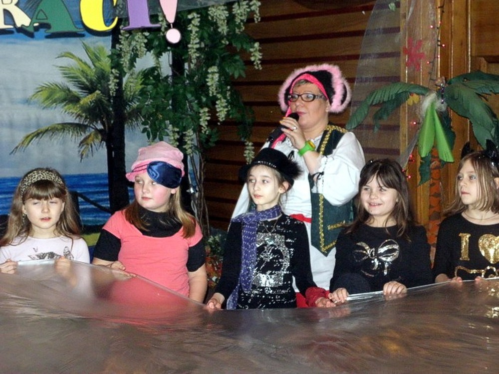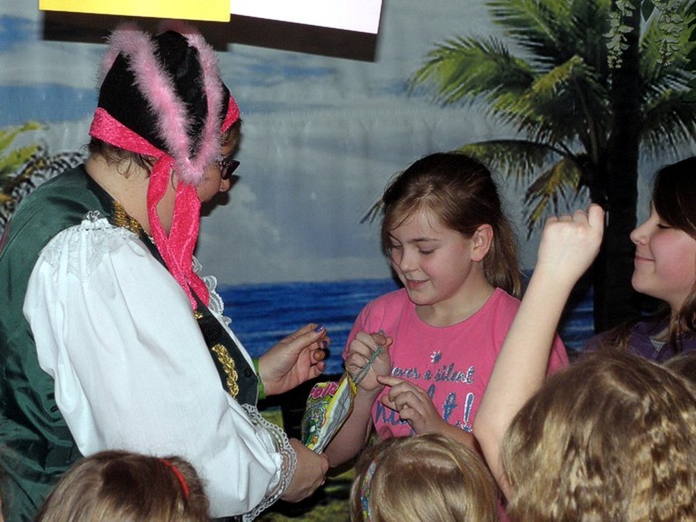Wiele zabaw, konkursów, śmiechu... przydało się małym i dużym zbójnikom i zbójniczkom. Nie zabrakło też pirackich czarów. Kto tylko chciał, mógł zostać zaklęty w mydlanej bańce.