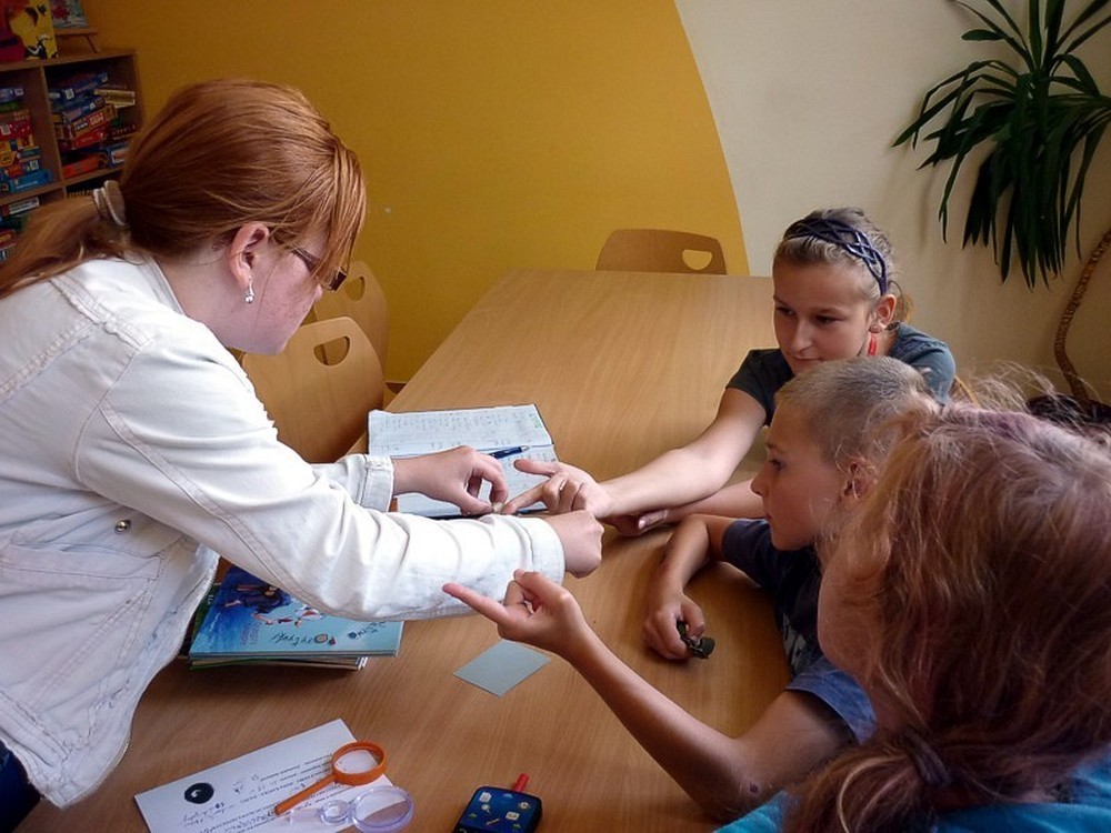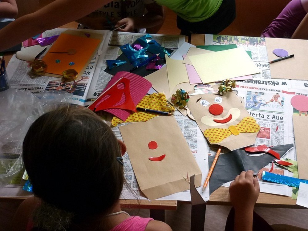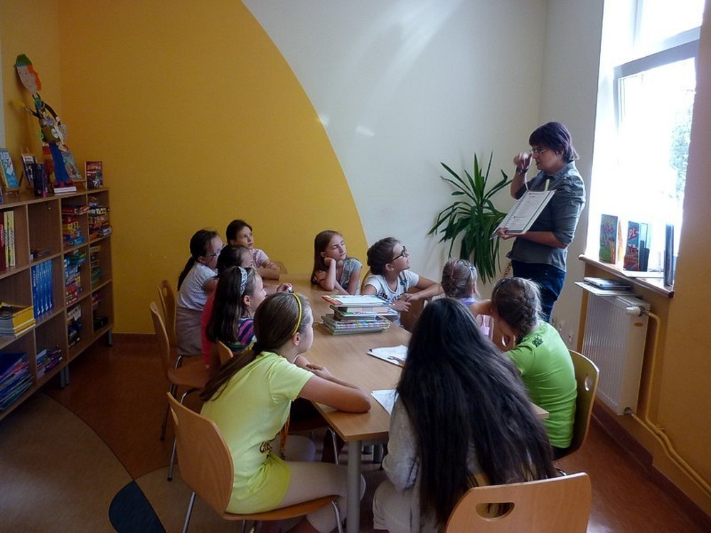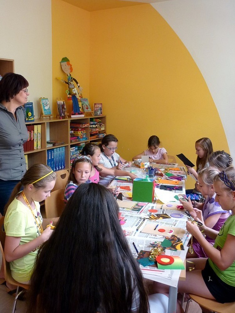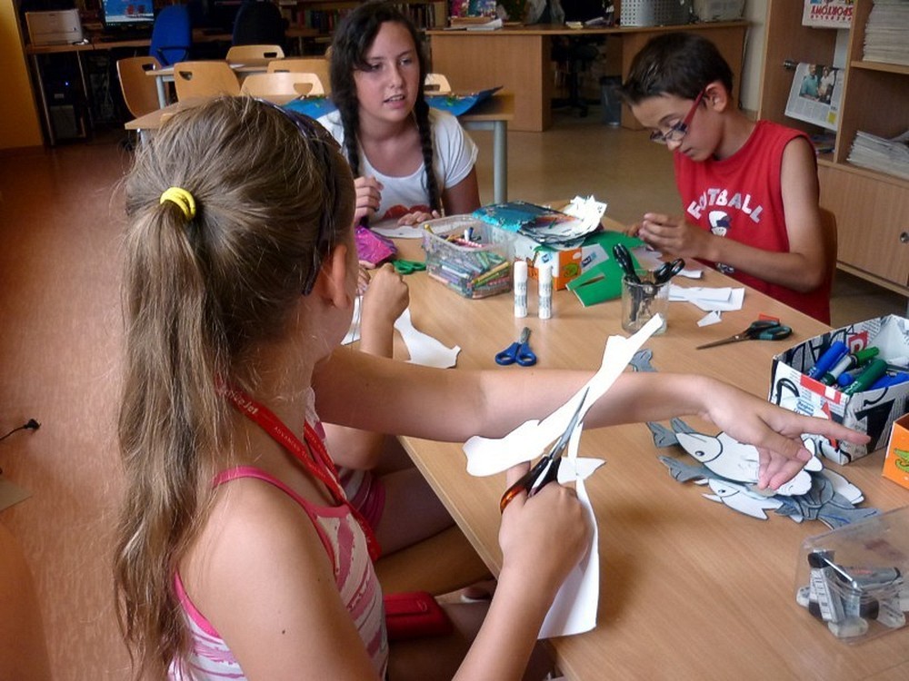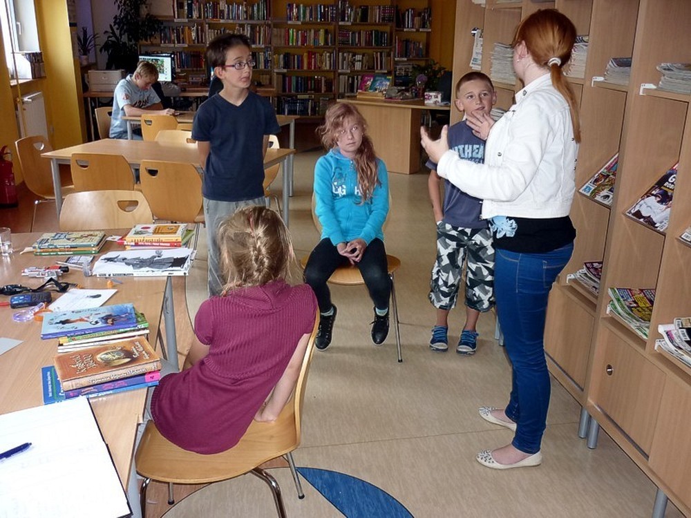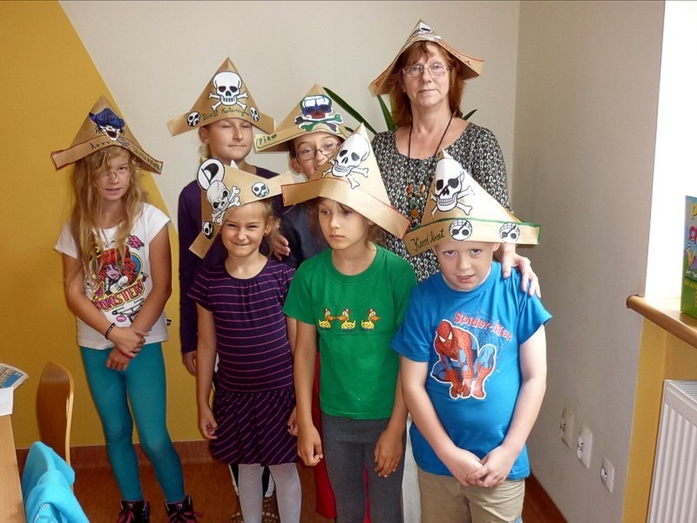 W każdy wtorek sierpnia, w czytelni naszej biblioteki, spotykały się MOLIKI KSIĄŻKOWE. Nasze spotkania zawsze są inspirowane książkami i tak też było w te wakacje. Pierwsze spotkanie - 6 sierpnia - rozpoczęliśmy od przygód z delfinami. Ciekawostki, zagadki, czytanie fragmentów książek, rozbudziły dziecięcą ciekawość. Na koniec zajęć - prowadzonych przez Panią Martę - moliki wykonały wspólną pracę plastyczną ph. OCEAN RADOŚCI. Drugie spotkanie molików (13 sierpnia) odbyło się pod czujnym okiem DETEKTYWA TWAROŻKA i... Pani Marty. Kilka zabaw integracyjno-kryminalnych, czytanie i promocja książek detektywistycznych zainspirowały moliki do wyposażenia "naszego" detektywa w niezbędne rekwizyty. Na trzecim spotkaniu (20 sierpnia), pod przewodnictwem "piratki Maryli", moliki przeobraziły się w piratów wykonując oryginalne czapki. Czytanie opowiadań o piratach i przegląd dostępnych książek o rozbójnikach morskich, pomogły molikom rozwiązać "Piracki quiz". Na zakończenie zajęć powstała wspólna praca plastyczna ph. WYSPA SZALONYCH PIRATÓW. W ostatni wtorek wakacji (27 sierpnia) zajęcia odbywały się pod hasłem W CO SIĘ BAWIĆ. Większość prezentowanych pozycji stanowiła literatura popularnonaukowa. Z pomysłów zabaw w domu i na podwórku, skorzystała połowa uczestników, wypożyczając zaprezentowane książki. Urozmaiceniem spotkania były - przeprowadzone przez Panią Wiolę - zabawy "językowe", między innymi alfabetyczna zgaduj-zgadula. Na zakończenie moliki wykonały KOPERTOWĄ PACYNKĘ.