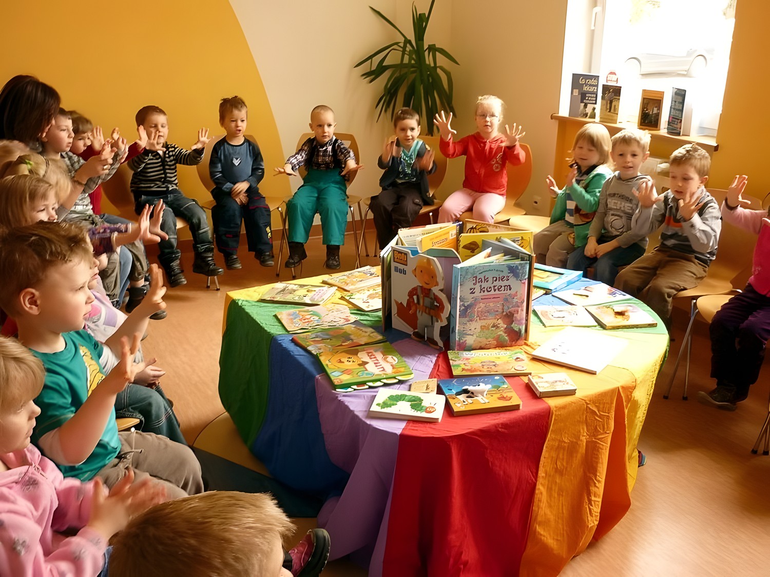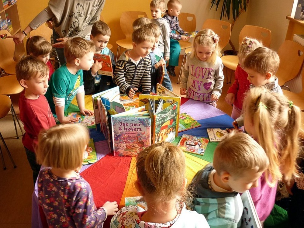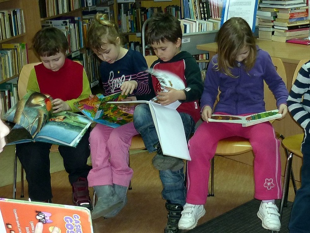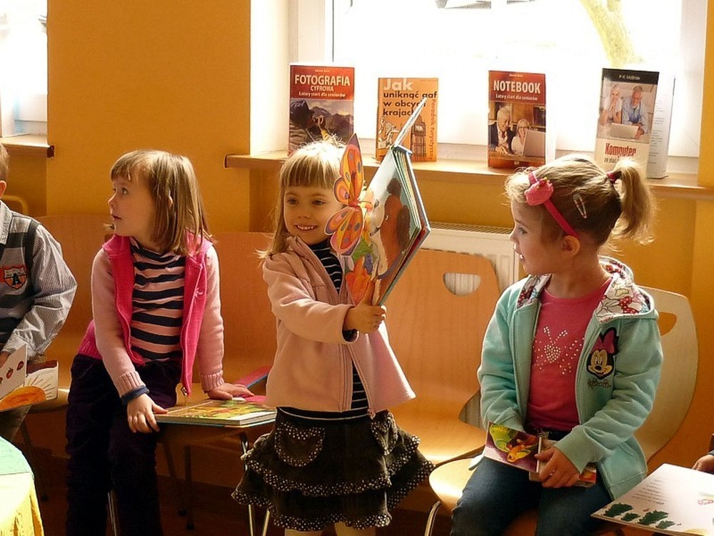 Dzieci zapoznały się z zasadami korzystania z biblioteki i jej zbiorów. Piękne książki (np. z zabawką animacyjną, dźwiękowe, trójwymiarowe, do głaskania) tym razem "przemówiły" do swoich czytelników i przekazały im pięć próśb. W nagrodę za dzielną postawę podczas spotkania, przedszkolaki wysłuchały opowiadania Janusza Wilczyńskiego "O królewnie, która chciała jeździć koparką".