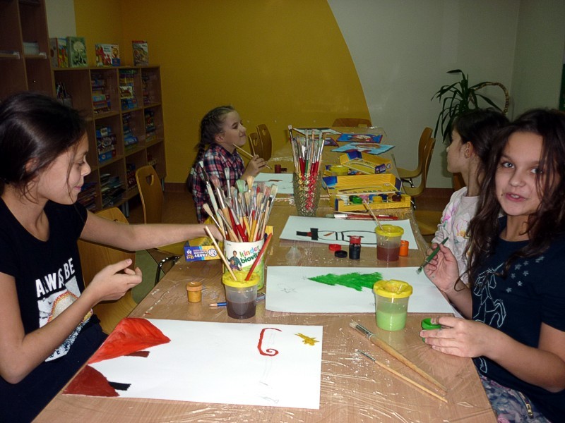Pomyśleliśmy też już o świętach bożonarodzeniowych i wystroju biblioteki. Moliki wykonały ładne świąteczne prace plastyczne.