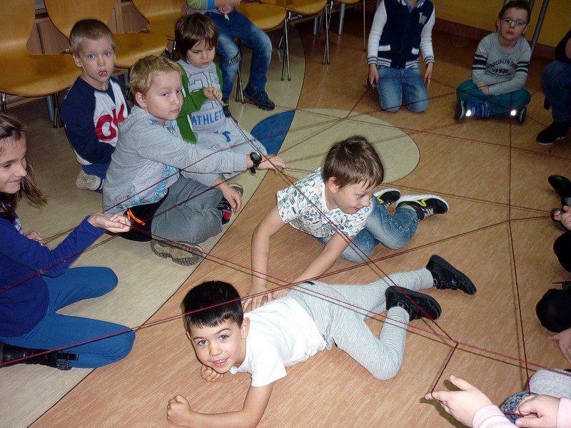 Książeczka o przyjaźni ŻABKA MA PRZYJACIELA (M.Velthuijs) była naszą lekturą dnia. Dzięki niej udało nam się odpowiedzieć na pytanie: Co to znaczy prawdziwa przyjaźń i dlaczego warto być przyjacielem? Zabawy związane z tematem spotkania bardzo się dzieciom podobały, wywołując mnóstwo emocji. Oczywiście, tyle było ile się zmieściło! A na koniec każdy uczestnik spotkania otrzymał zakładkę do książki. Zadowolone dzieci i nauczycielki odwdzięczyły się bibliotekarkom piękną laurką.