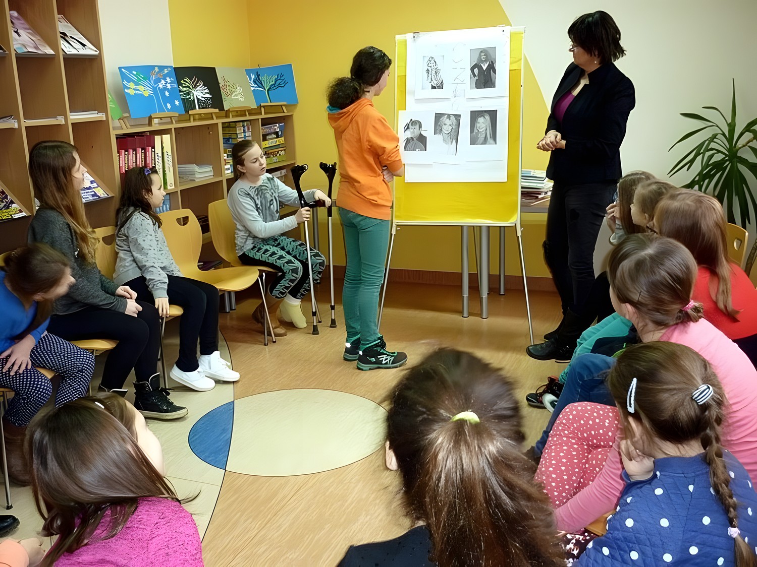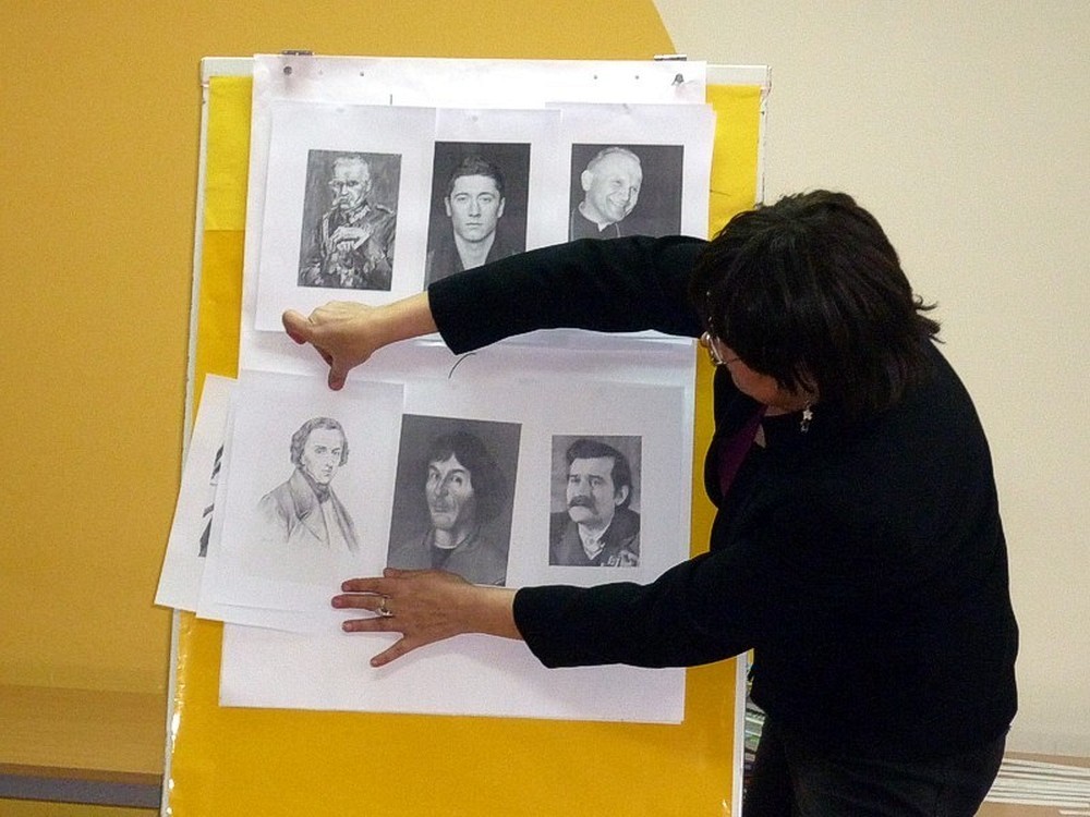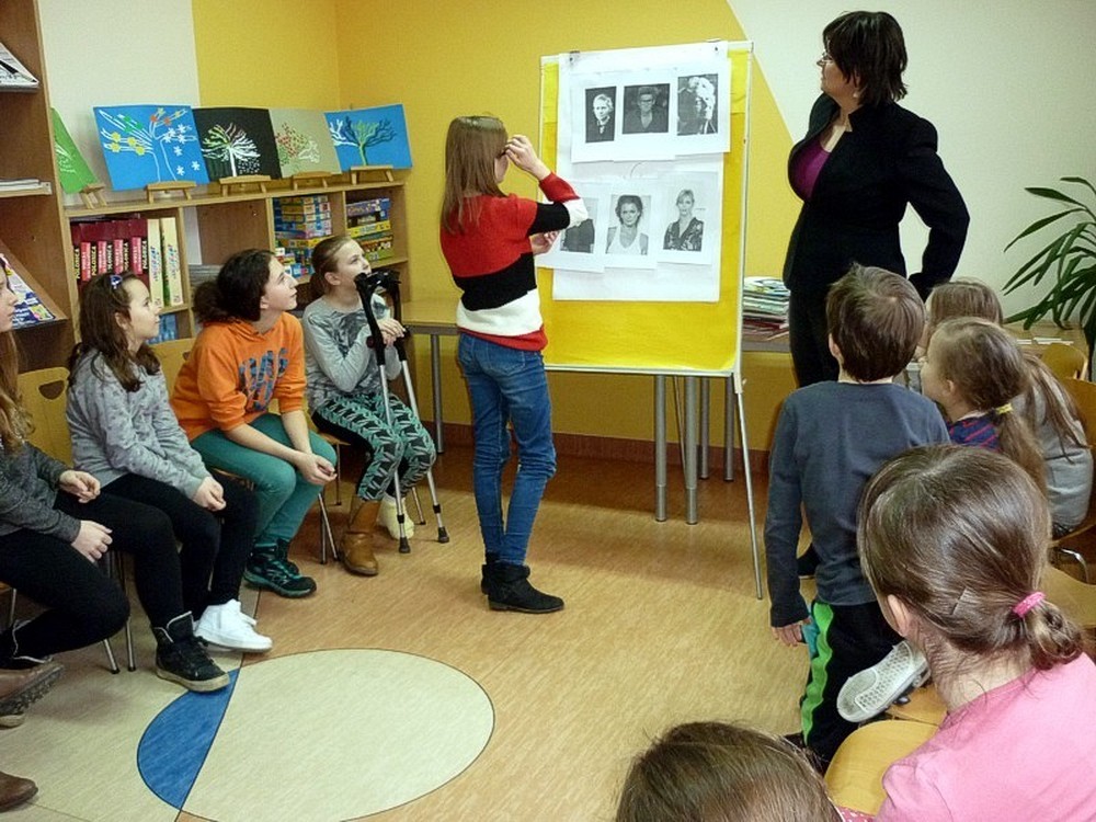Spotkanie rozpoczęliśmy od przeglądu książek biograficznych, a dla urozmaicenia przekazu, posłużyliśmy się cytatami. Twarze słynnych Polaków ukazały nam się w zgadywance fotograficznej (przy naszych wielu bohaterach wysiada nawet James Bond!), a następnie sami użyczyliśmy swoich buziek do zabawy w "Kim jestem?".