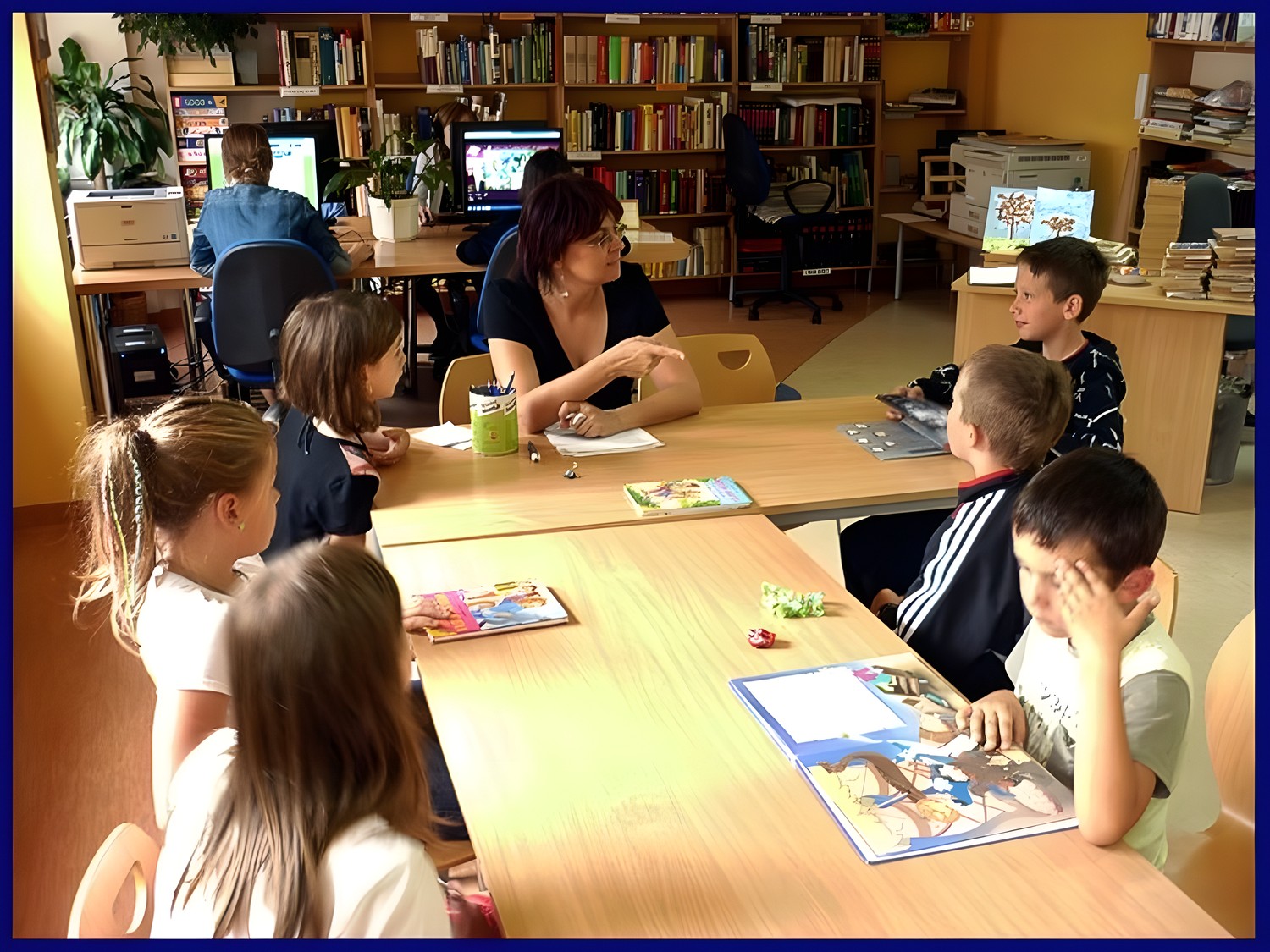 Ostatnie wakacyjne spotkanie molików (31 sierpnia) zaczęliśmy od prezentacji ciekawych książek dla dzieci. Moliki wysłuchały bajki "Pagemaster", następnie brały udział w różnych zabawach literackich i zajęciach plastycznych.