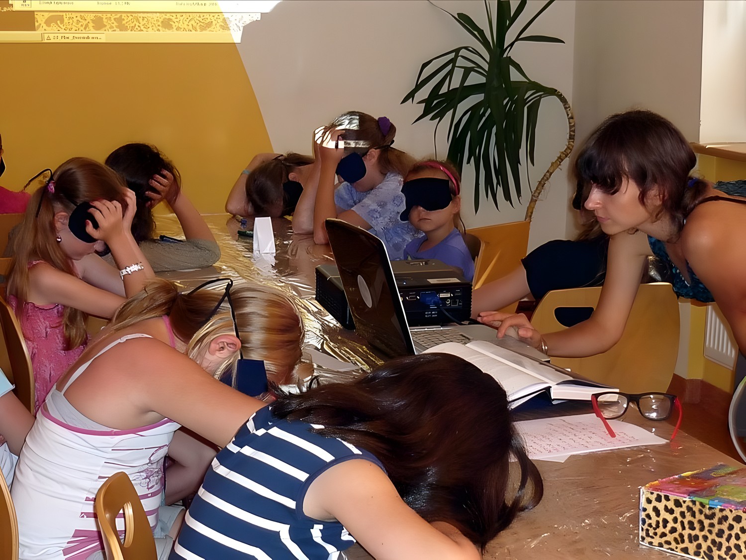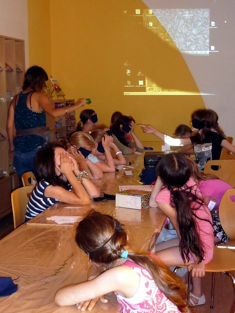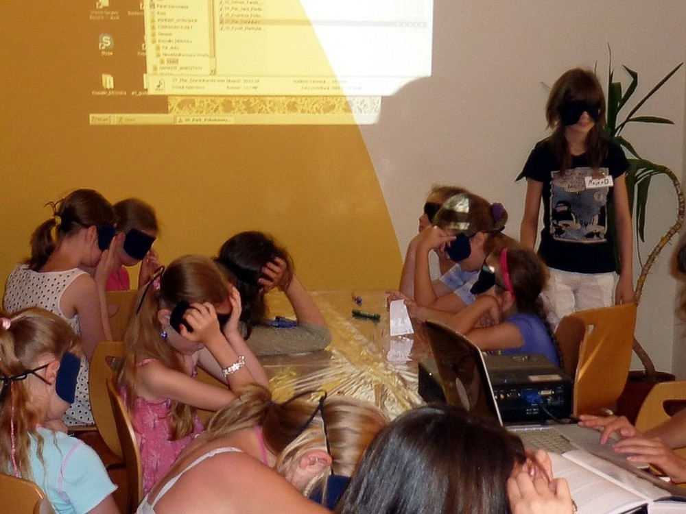 Drugi dzień warsztatów (9 lipca) w całości poświęcony był temu, w jaki sposób potrafimy wykorzystać inne zmysły, kiedy nie możemy czegoś zobaczyć. Okazało się, że zupełnie nieźle sobie radzimy. Te niepowtarzalne doświadczenia bardzo podobały się uczestnikom zajęć.