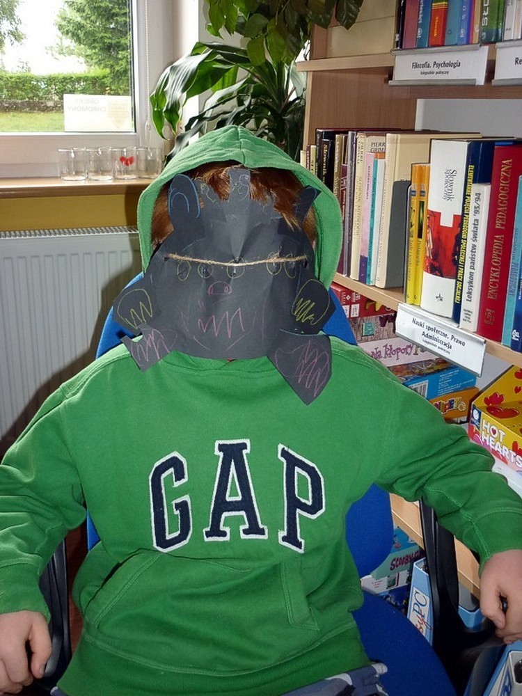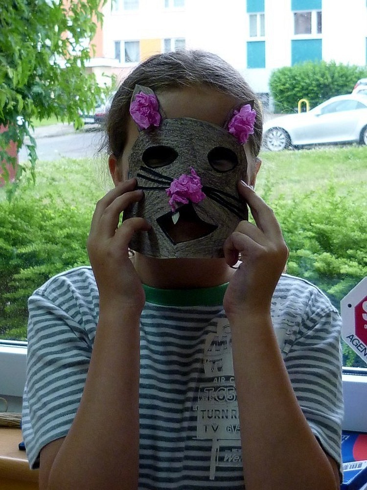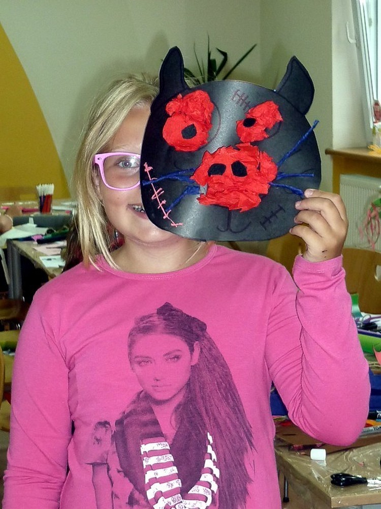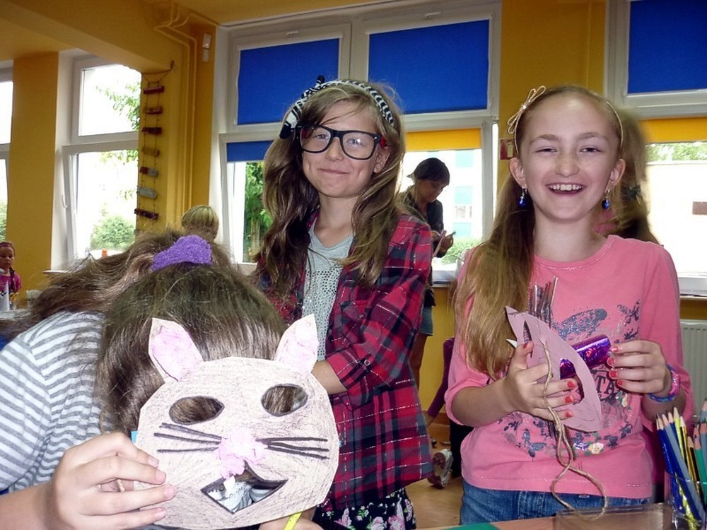 Przedostatni dzień zajęć (11 lipca) zdominowały zwierzęta. Najważniejszym zadaniem było wybranie takiego zwierzęcia, z którym najbardziej się identyfikujemy. Później... łatwizna - projekt maski i efekty możemy podziwiać na zdjęciach...