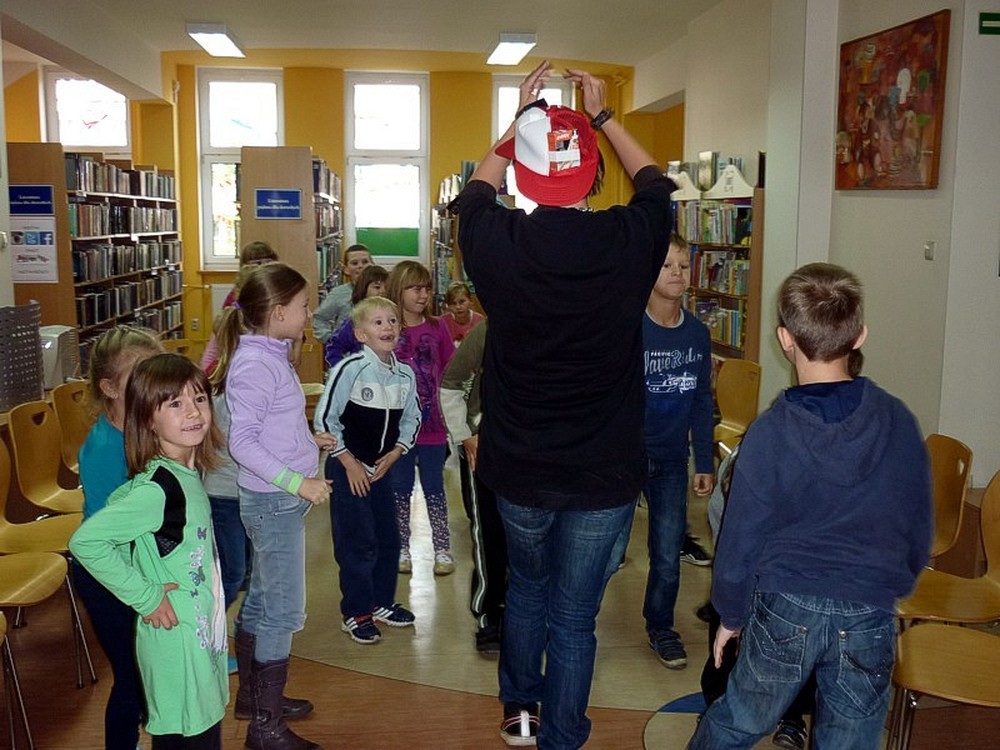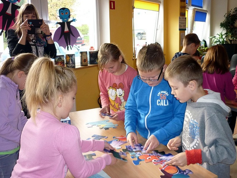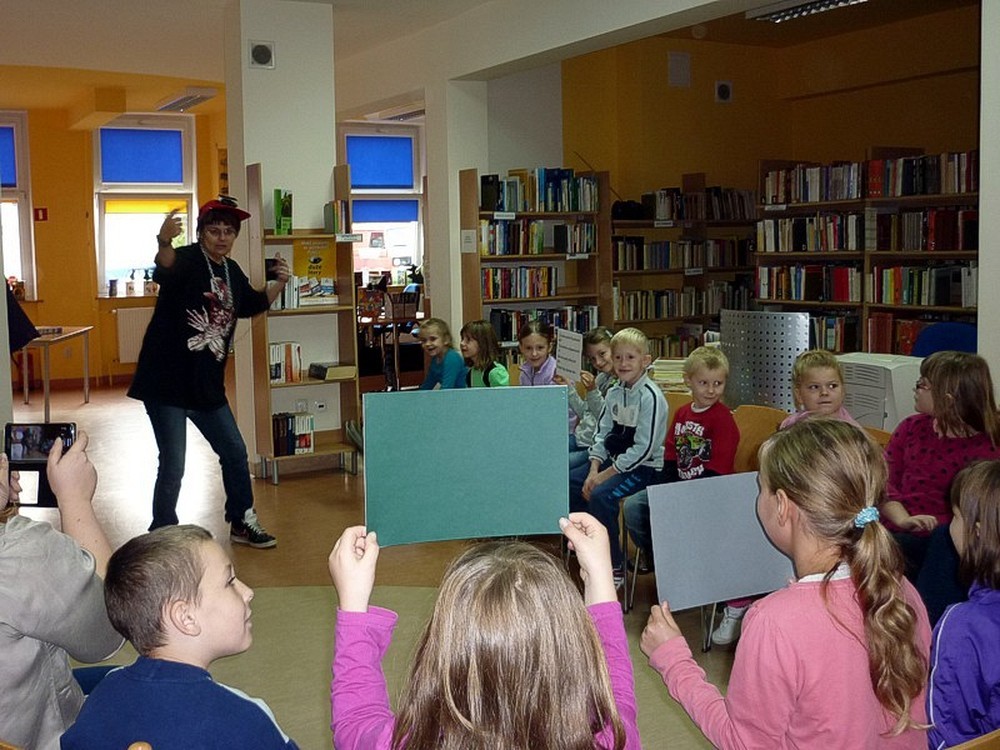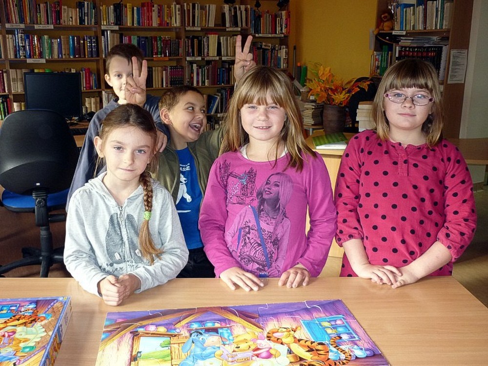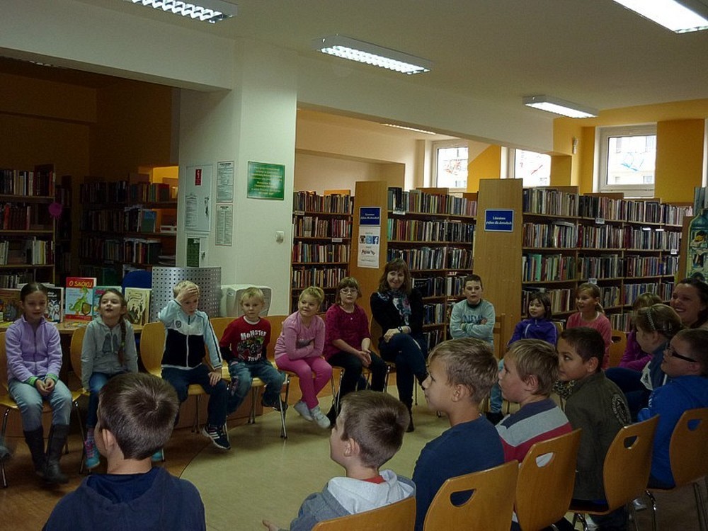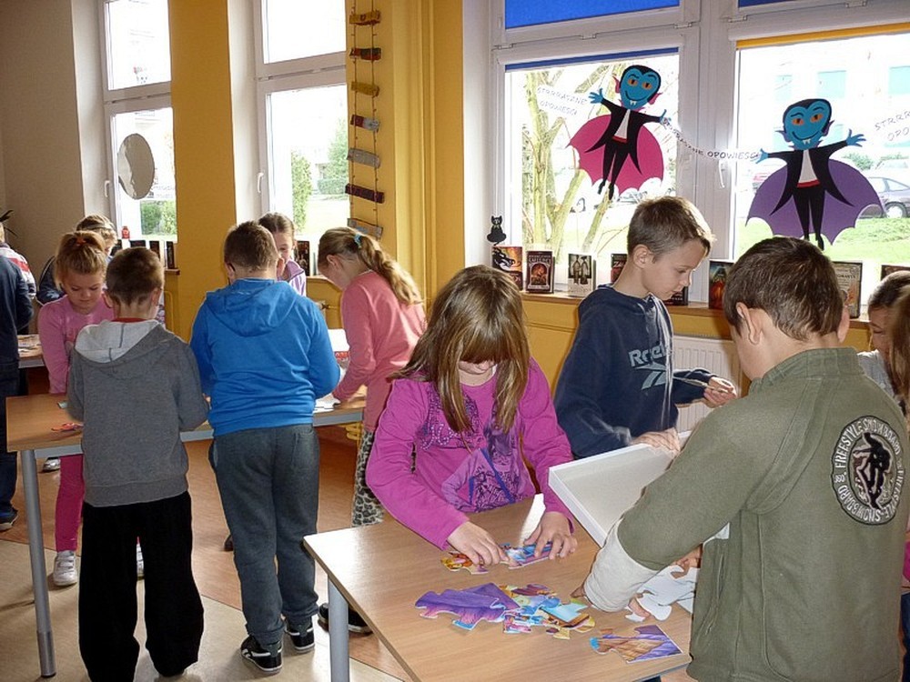 W poniedziałkowy poranek - 27 października - gościliśmy w naszej bibliotece uczniów klas drugiej i trzeciej ze Szkoły Podstawowej w Suchej Koszalińskiej. Przyjechali do nas na spotkanie z Babą Dżagą i innymi bohaterami BAJEK POKRĘCONYCH. Poprzez gry i zabawy czytelnicze: słowne, stolikowe, i ruchowe, dzieci miały przyjemność aktywnego uczestnictwa w kulturze. Zaproponowane przez Panią Wiolę formy rozrywkowe przypadły im do gustu. Obiecały, że wrócą do nas w drugim półroczu.