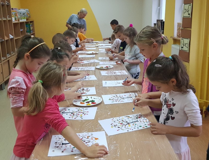 Resztę intensywnego spotkania wypełniły nam kolorowe zabawy tematyczne - BALONOWA BITWA, HOP HOP STOP, zagraliśmy w ORNE POLE, a nawet stworzyliśmy przepiękne drzewka w kolorach jesieni.