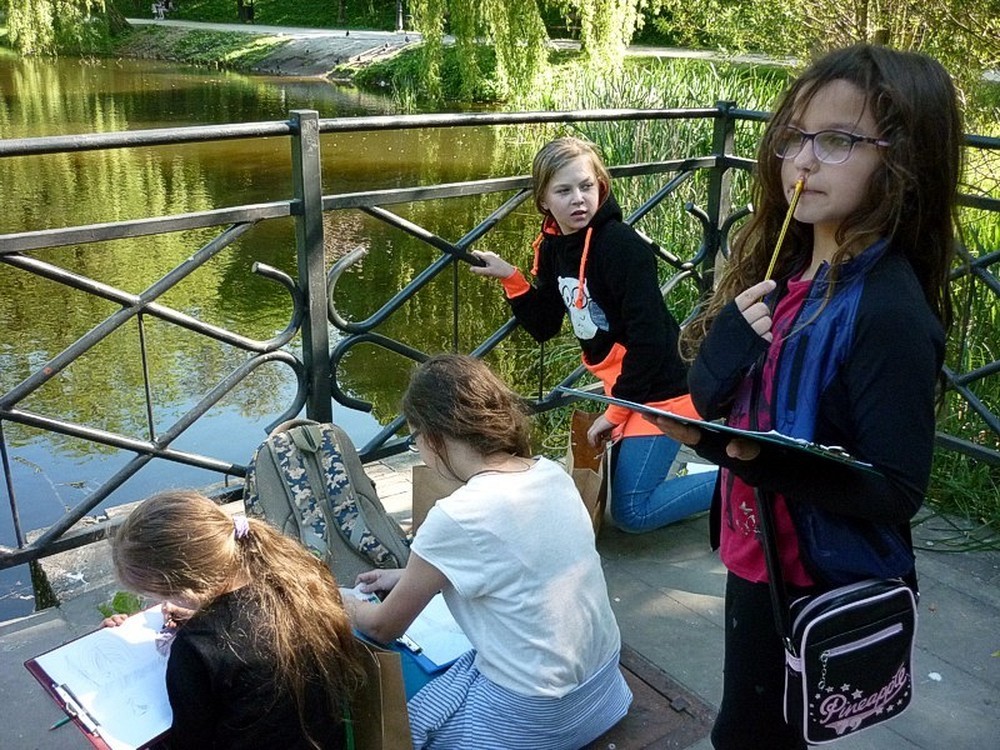 Piątkowe (13 maja) spotkanie MOLIKÓW wyjątkowo postanowiliśmy spędzić w plenerze. Pogoda jak zwykle nas nie zawiodła i bez przeszkód mogliśmy wybrać się nad koszaliński STAW ZAMKOWY. Tonący w pięknych odcieniach zieleni staw i zamieszkujące łabędzią wyspę ptaki, stały się natchnieniem dla malarskich poczynań naszych uczestników.