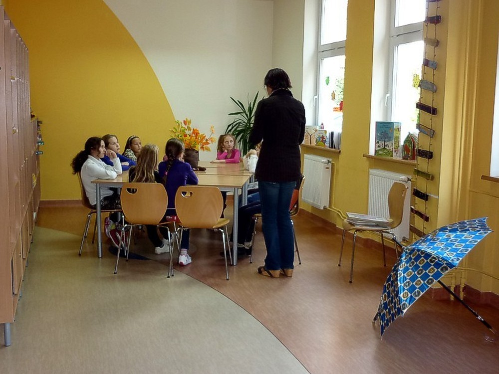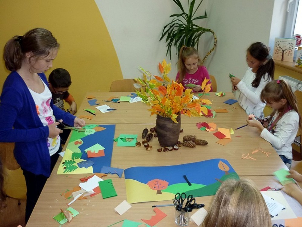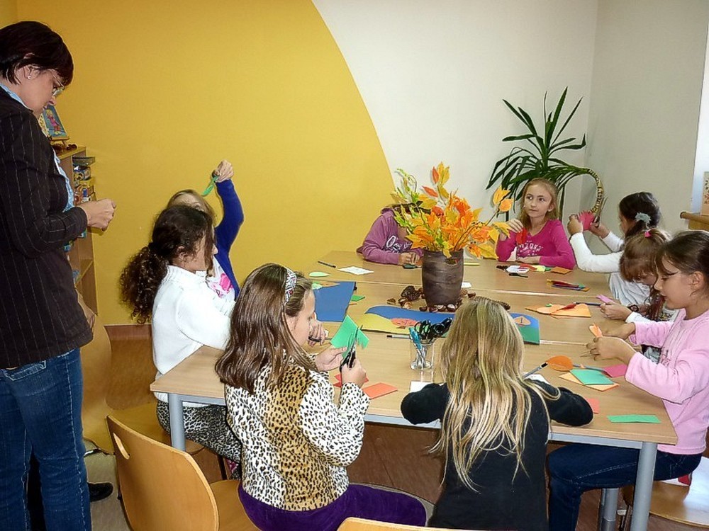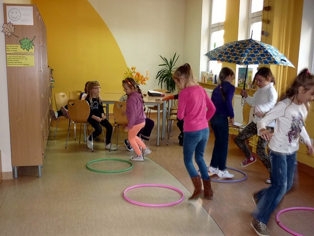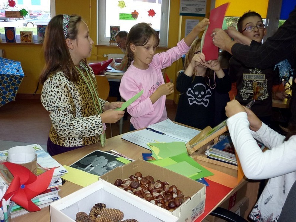 W piątkowe popołudnie - 27 września - w naszej czytelni było jesiennie i... poetycko. Czytanie wierszy, zgadywanki, rymowanki i wesoła zabawa w "Kałużystów", wypełniły część naszego spotkania. A w finale... z wykonanych przez dzieci kolorowych jesiennych liści, powstały fantazyjne pejzaże.