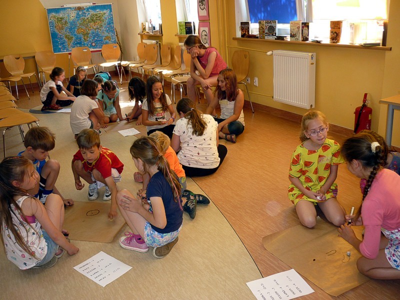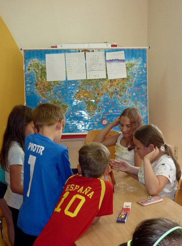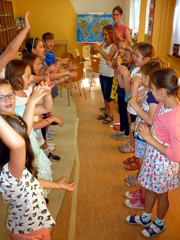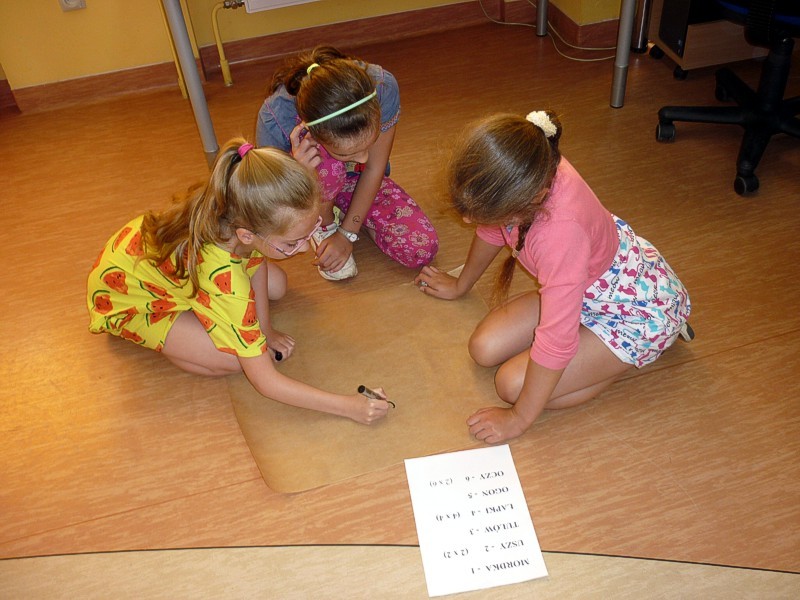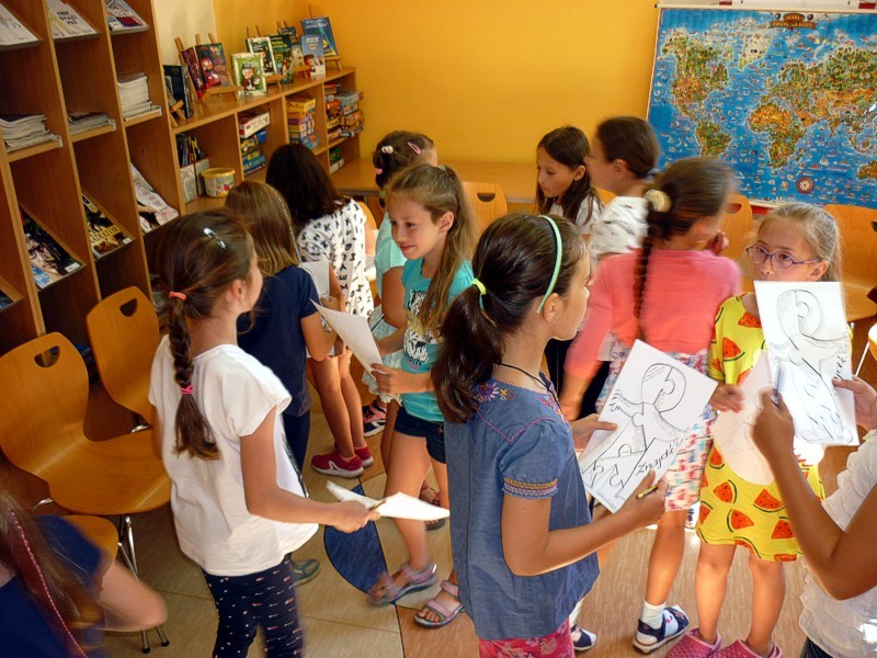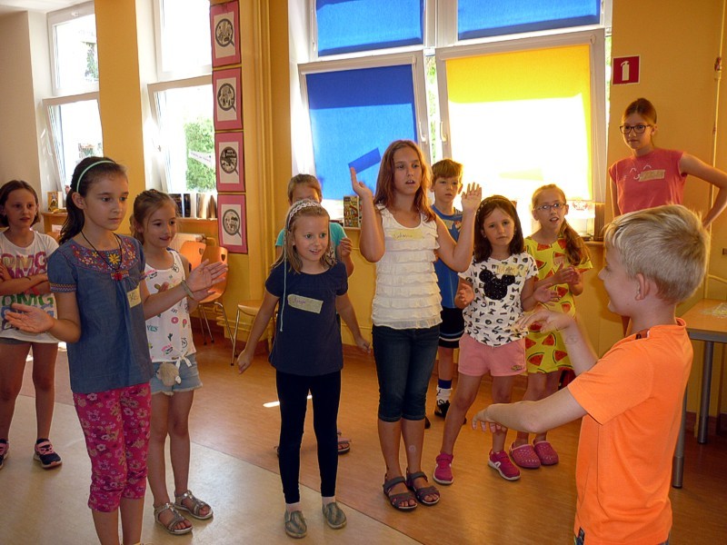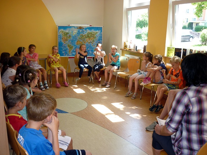 Pierwszy dzień zajęć wakacyjnych upłynął nam na wzajemnym poznawaniu się. Przy zabawach integracyjnych z cyklu ROZRUSZAĆ TOWARZYSTWO, szybko poznaliśmy swoje imiona... i nie tylko. Nie zabrakło również głośnego czytania książki Marcina Pałasza CHCIAŁBYM MIEĆ PSA CZYLI JAK WYCHOWAĆ CZŁOWIEKA, oraz zajęć plastycznych, podczas których powstała oryginalna wizytówka - DŁOŃ w 3D.