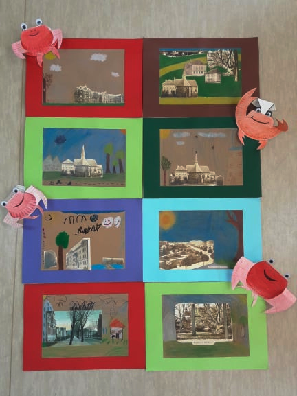 Zdjęcia Koszalina sprzed lat, oraz inwencja twórcza dzieci dały bardzo ciekawe rezultaty! Powyższe prace zdobią już okna naszej czytelni.