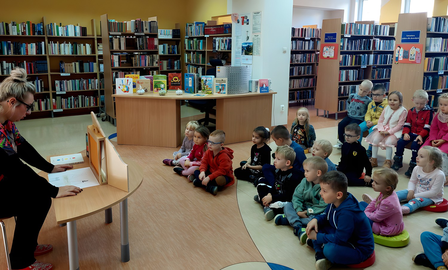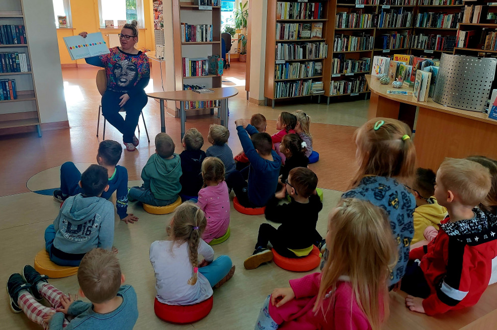 Czterolatki z pobliskiego Przedszkola nr 15 postanowiły wspólnie z nami przeżyć KOLOROWĄ PRZYGODĘ. Historyjka z elementami dreszczowca("Wędrówka pędzla i ołówka" - M. Terlikowska) i zabawa kolorami ("Naciśnij mnie" - H. Tullet) zaspokoiły czytelniczy apetyt przedszkolaków, ale trzeba było również zaspokoić ich nieustającą ochotę do brykania.Sądzimy, że udało nam się sprostać oczekiwaniom dzieci, wystarczy spojrzeć na naszą fotorelację.
