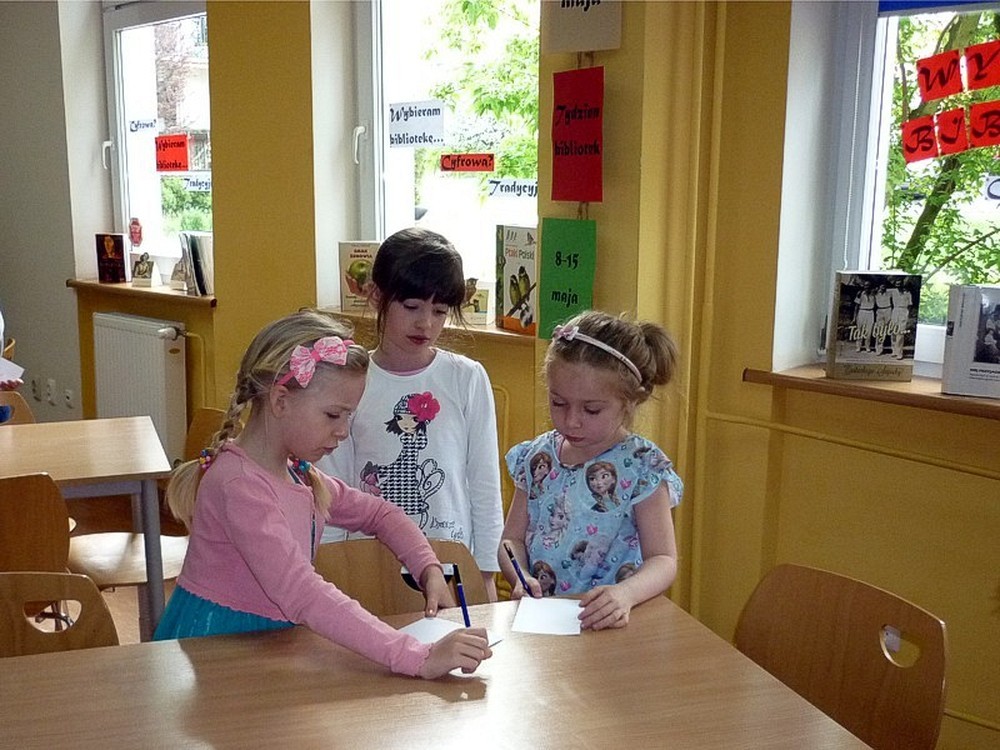 Historyjka w obrazkach to frajda dla małego i dużego czytelnika, dlatego też w dniu 14 maja do udziału w KOMIKSOWEJ PRZYGODZIE zaprosiłyśmy uczniów klasy I f ze Szkoły Podstawowej nr 18 w Koszalinie. Dzieci wysłuchały fragmentu przygód Koziołka Matołka, odszukały bohaterów w "Komiksowej Alejce Gwiazd" i próbowały znaleźć drogę do Wioski Smerfów. Było też słodkie pożegnanie - jak to w Tygodniu Bibliotek bywa!