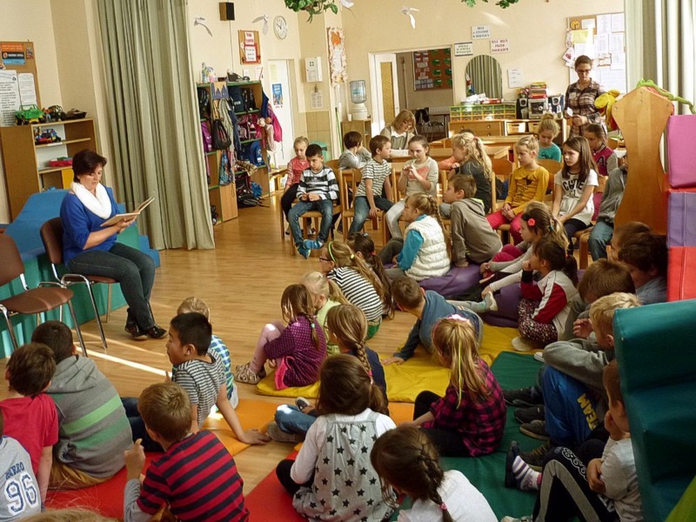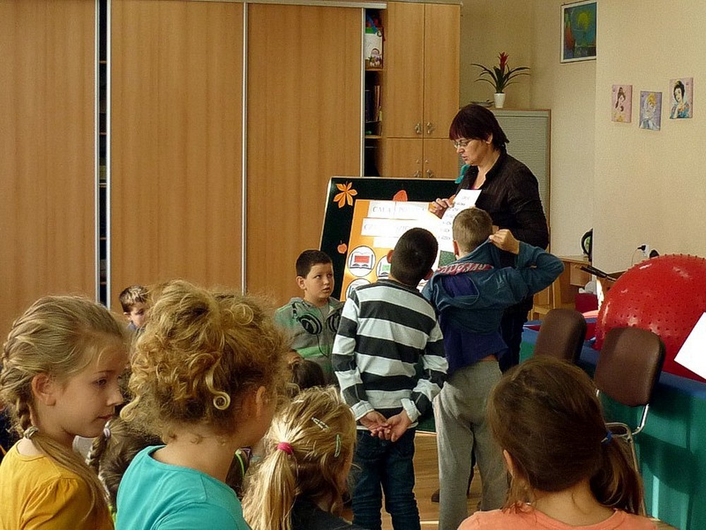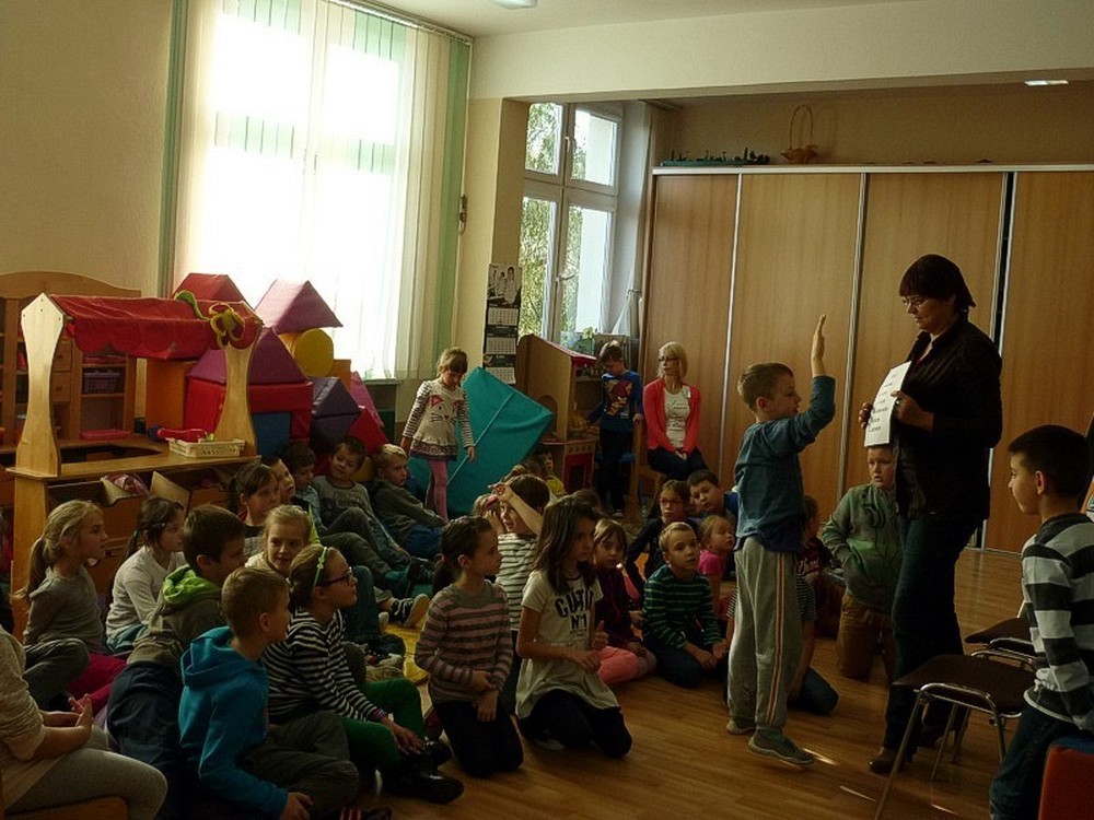 Pani Ewa przeczytała dzieciom zgromadzonym w świetlicy szkolnej, zabawną i nieco zwariowaną bajkę (można się było popłakać ze śmiechu). Była to historia "SMOKA WAWELSKIEGO" według Grzegorza Kasdepke, który słynie z poczucia humoru.