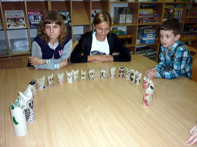 W piątek 29 września odbył się u nas - pierwszy po wakacjach - ZLOT MOLIKÓW książkowych. Celem spotkania była między innymi prezentacja nowości wydawniczych dla dzieci i młodzieży oraz rozprawienie się z mitem sowy jako symbolu mądrości. Okazało się, że sowy nie grzeszą rozumem. Sowy to nie mądre głowy, jak kiedyś wierzono, ale na pewno ciekawe i trochę dziwne ptaki. Przy okazji sprawdziliśmy własną bystrość umysłu rozwiązując łamigłówki zapałczane, sudoku, różne krzyżówki i rebusy.