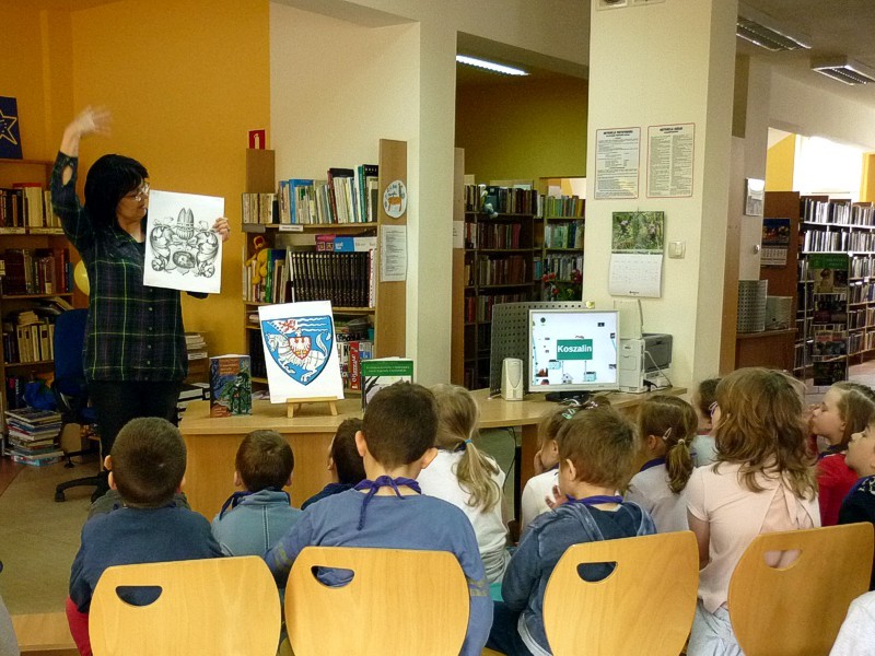 W czwartek 11 maja, na kolejne edukacyjne spotkanie, przybyły sześciolatki z gr. 10 z Przedszkola nr 15 w Koszalinie. Dzieci poznały historię naszej małej ojczyzny w formie prezentacji multimedialnej, po czym wysłuchały koszalińskiej legendy - DRZEWO CZAROWNIC CZYLI O PIĘKNEJ LINIE I NIESTAŁYM JANIE, w interpretacji na teatrzyk Kamishibai. Legenda przykuła uwagę dzieci i wzbudziła wiele emocji, podobnie jak historyczny herb Koszalina.