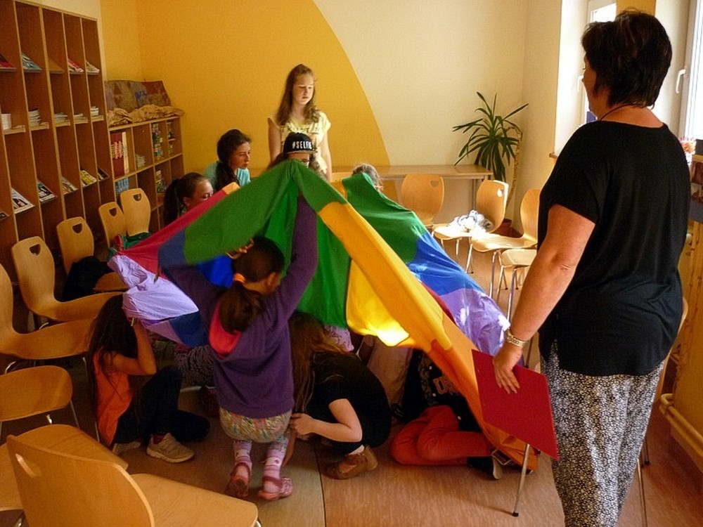 Ostatnie dwa dni wakacji w bibliotece upłynęły nam pod znakiem zabaw sportowych.