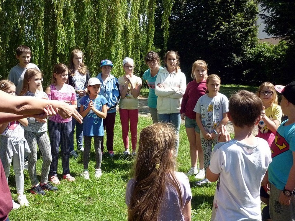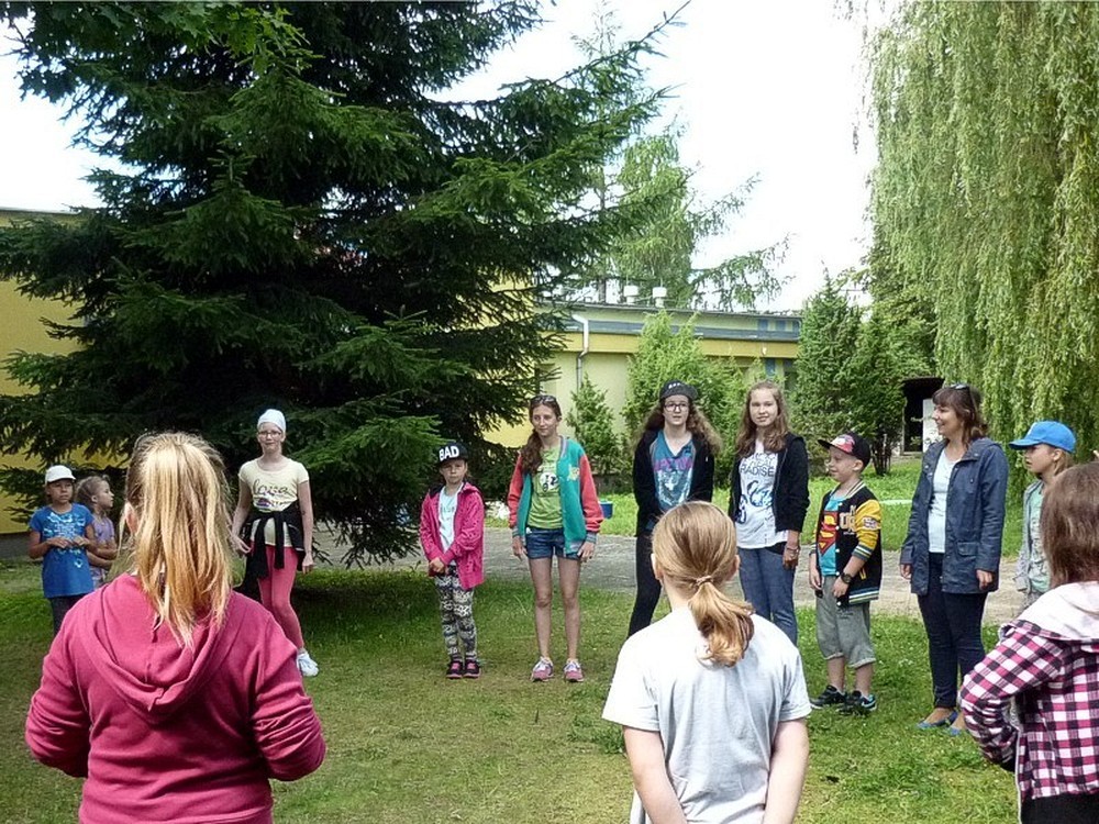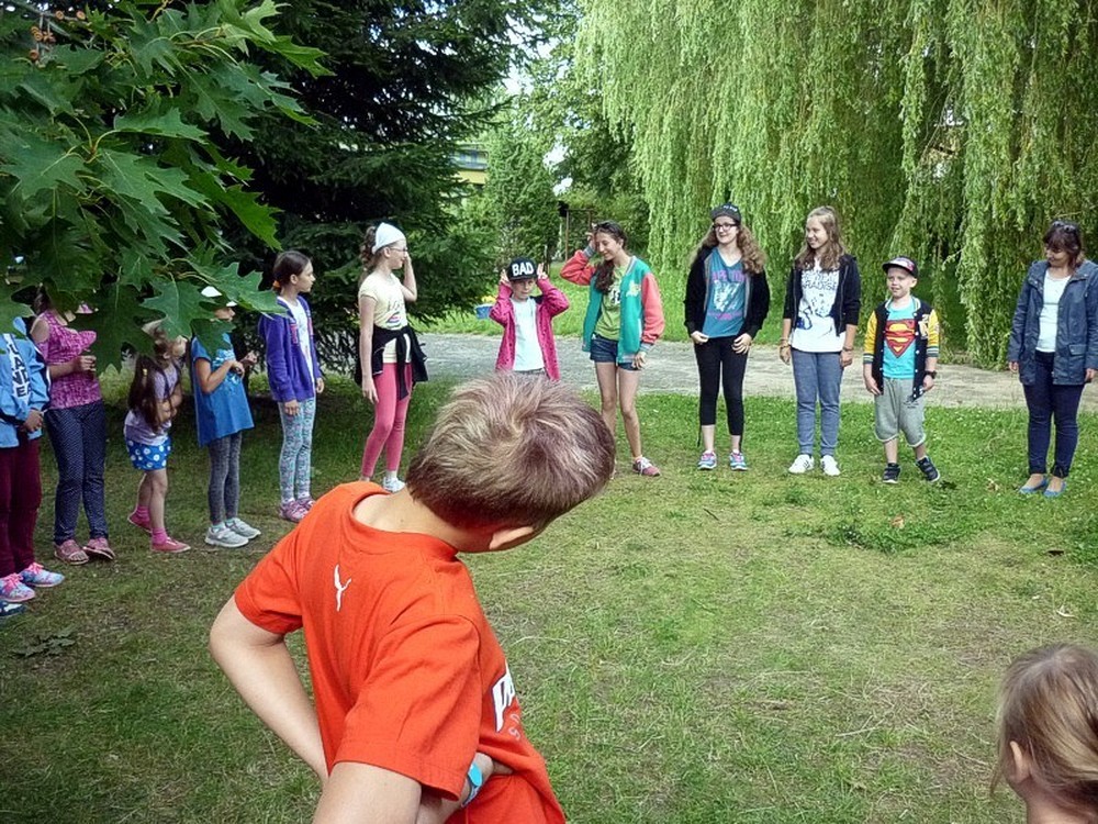 W środę 15 lipca ugościły nas bibliotekarki z Filii nr 9 (przy ul. Struga). Pani Marzenka przygotowała dla nas kilka sportowych atrakcji. Mogliśmy też przedstawić swoje teatrzyki KAMISHIBAI i obejrzeć teatrzyk dzieci z "Dziewiątki". DZIONEK-SZALONEK upłynął nam szybko. Jesteśmy zadowoleni z przygody na świeżym powietrzu.