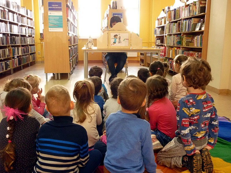 Dzisiaj - 15 marca - przyfrunęły do nas Biedronki - grupa czterolatków z Przedszkola nr 35 w Koszalinie. W wiosennym nastroju przebiegało nasze spotkanie z pluszowym bohaterem książki Margaret Williams - AKSAMITNY KRÓLIK czyli Jak Zabawki Stają Się Prawdziwe. W części edukacyjnej oprócz przeglądu książek, w których bohaterami są zabawki, dzieci obejrzały Teatrzyk Kamishibai.Była to rysunkowa adaptacja AKSAMITNEGO KRÓLIKA. Na część rozrywkową składały się wesołe zabawy ruchowe - ZNAJDŹ NORKĘ, HOP, HOP, STOP! i RAKIETA - zabawa będąca już, tradycyjnie, naszym pożegnaniem.