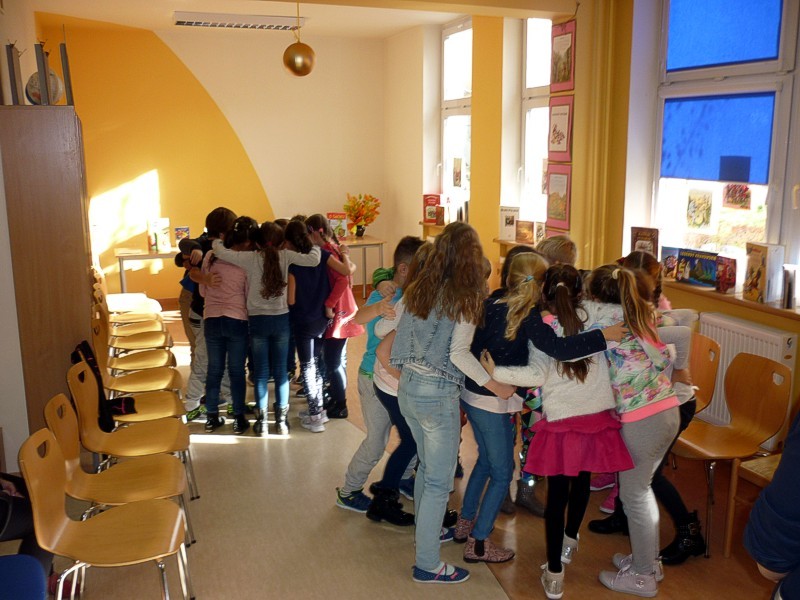 Żywiołowa grupa była zainteresowana przedłużeniem rozrywkowej części spotkania, ale czas było wracać do szkoły, my zaś otwierałyśmy już bibliotekę dla innych użytkowników.