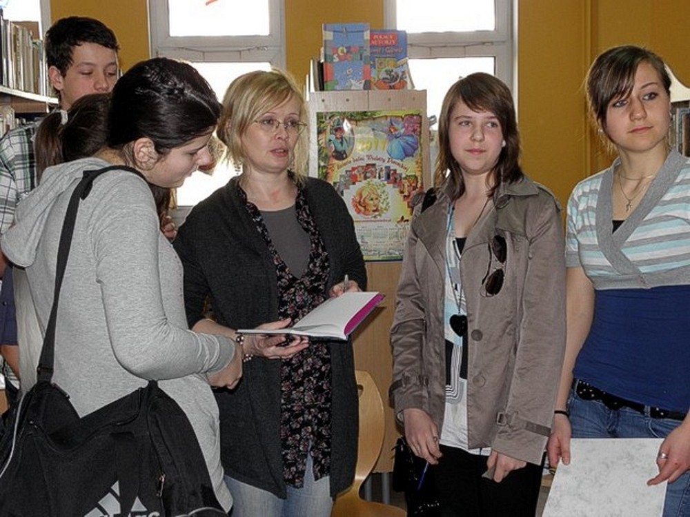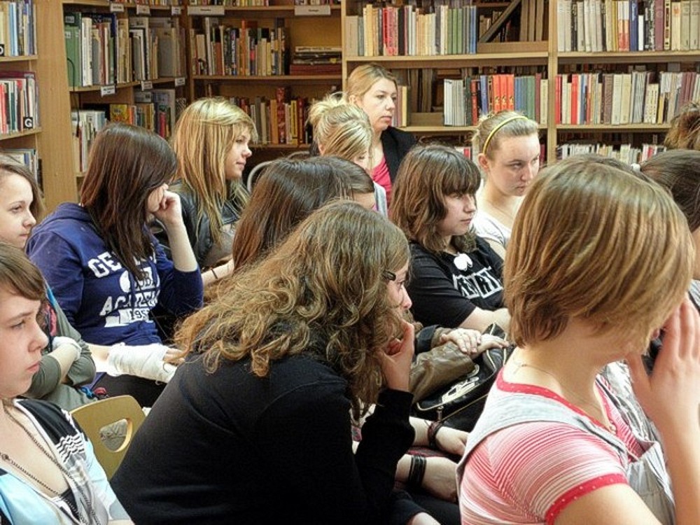 Rozczytana młodzież z zaprzyjaźnionego z nami Gimnazjum nr 9 w Koszalinie, z niecierpliwością oczekiwała na autorkę. Uczestnicy, początkowo nastawieni sceptycznie, stopniowo się "rozkręcali". Spotkanie miało charakter panelu dyskusyjnego.