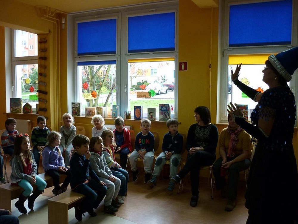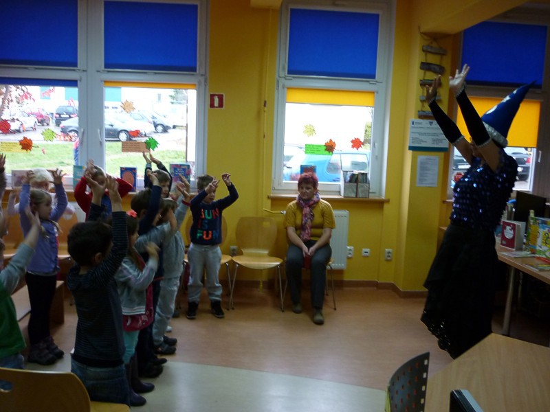 Dnia 18 października, do naszej siedziby, przybyły "Niedźwiadki" z Przedszkola nr 35 w Koszalinie na spotkanie z Książkową Wróżką. Czarodziejska moc Wróżki Wioletycji polega na obdarowywaniu wszystkich miłością do książek. W trakcie spotkania sześciolatki wysłuchały historyjki pt. "Wyprawa do biblioteki" (z książki C. West - "Monti pies w okularach"), oraz wiersza Joanny Papuzińskiej "Przyjaciółki zwierząt". Chętnie bawiły się w alfabetyczną zgaduj-zgadulę oraz w "czary-mary" - ulubioną rozrywkę Wróżki. Pożegnaliśmy się... tanecznie.