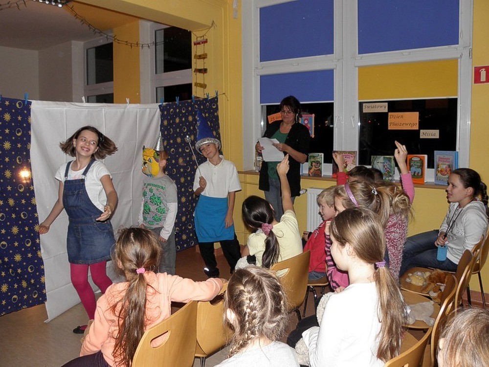 Piątek 23 listopada. Godzina 16.00. Do biblioteki przybywają dzieci z pluszowymi misiami. Czytelnia w scenerii teatralnej...