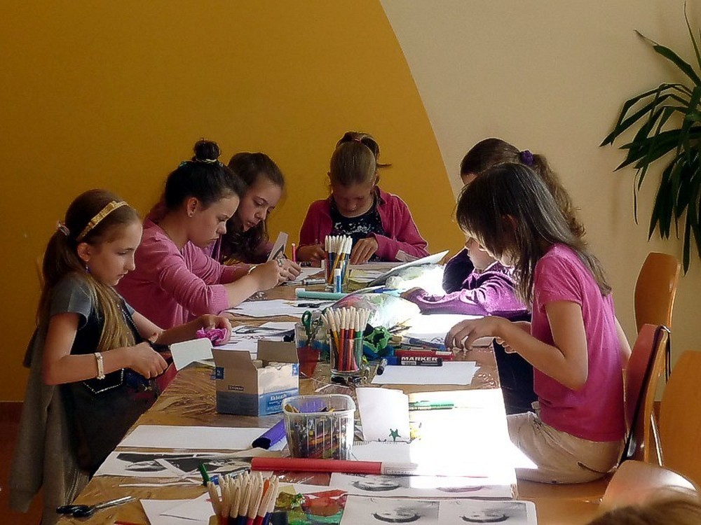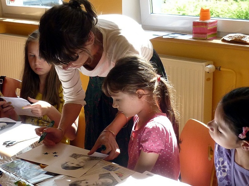 Dzisiejszy dzień (12 lipca) obfitował w niespodzianki. Oliwia zaskoczyła wszystkich urodzinowymi słodkościami, następnie światło dzienne ujrzały nasze "alter ego"... Okazało się, że w niektórych drzemią demony, a w innych siedzi Marylin Monroe. Ktoś ma naturę kociaka, a kolejny szaloną osobowość z afro na głowie... Było bardzo wesoło... i głośno. Pani Maria skutecznie wyciszyła emocje "produkcją" instrumentów muzycznych, by ponownie je rozkręcić wspólnym muzykowaniem i "rozkosznymi" śpiewami. Reasumując - BYŁO SUPER! Wakacyjne zajęcia zakończył konkurs z nagrodami, który dodatkowo osłodził gorycz rozstania.