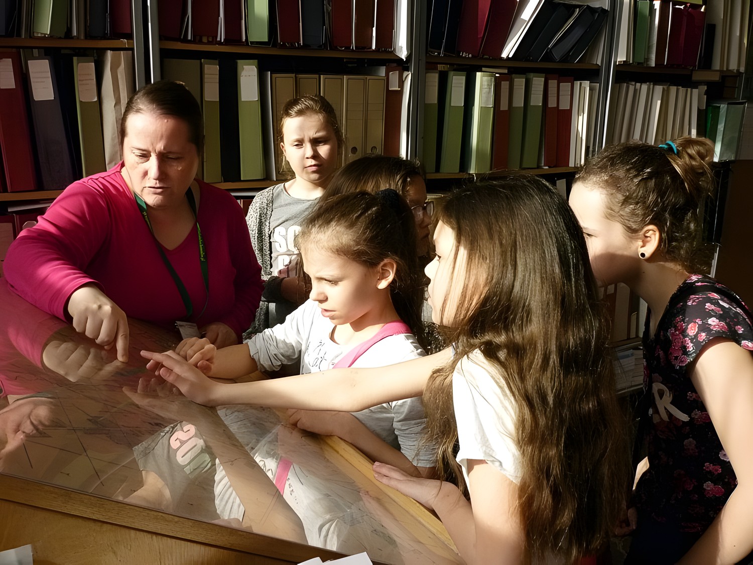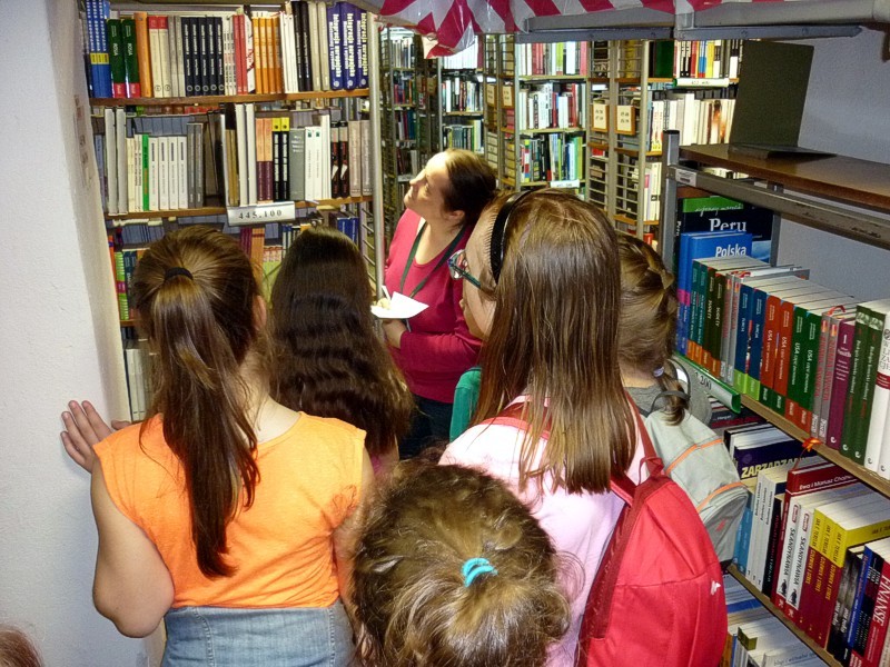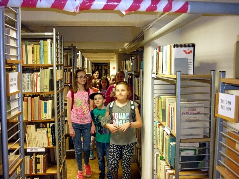 Największą atrakcją były jednak MAGAZYNY! Z wydrukowanym w Informatorium rewersem ruszyliśmy - niczym detektywi - śladem wybranej wspólnie książki. Pani Ola była naszym przewodnikiem w labiryncie magazynowych korytarzy i co chwilę miała dla nas różnego rodzaju niespodzianki i zagadki. MOLIKI były tak zaabsorbowane, że nawet nie zauważyły, kiedy znalazły się obok regału, gdzie stała nasza poszukiwana książka.