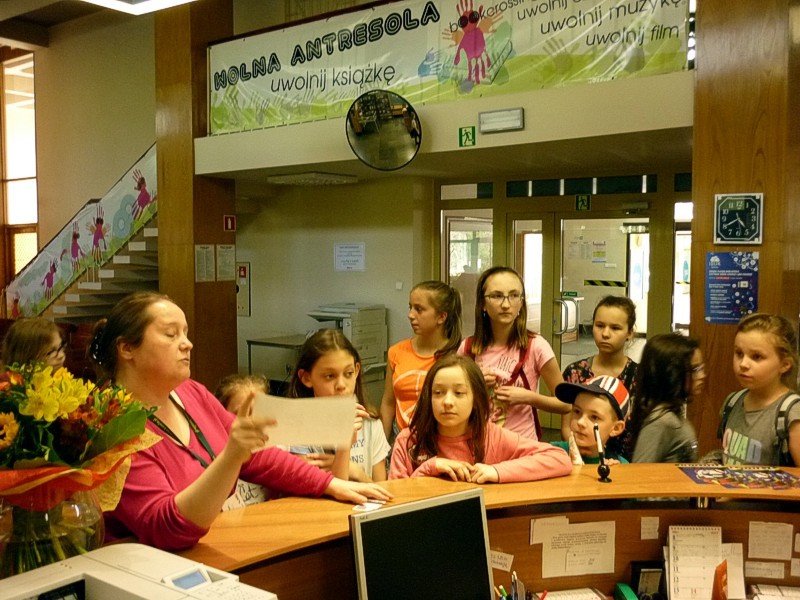 W piątek (12 maja) po raz ostatni przed wakacjami spotkałyśmy się z MOLIKAMI książkowymi. W związku z tym, że trwał jeszcze Tydzień Bibliotek, zaproponowałyśmy dzieciom wycieczkę do KBP (Plac Polonii 1). Pogoda była przepiękna, a w bibliotece czekała na nas Pani Ola z mnóstwem atrakcji. Zwiedziliśmy Informatorium, Wypożyczalnię i Czytelnię, zajrzeliśmy do Fonoteki i Wypożyczalni Książki Mówionej. Nie ominęliśmy Czytelni Regionalnej.