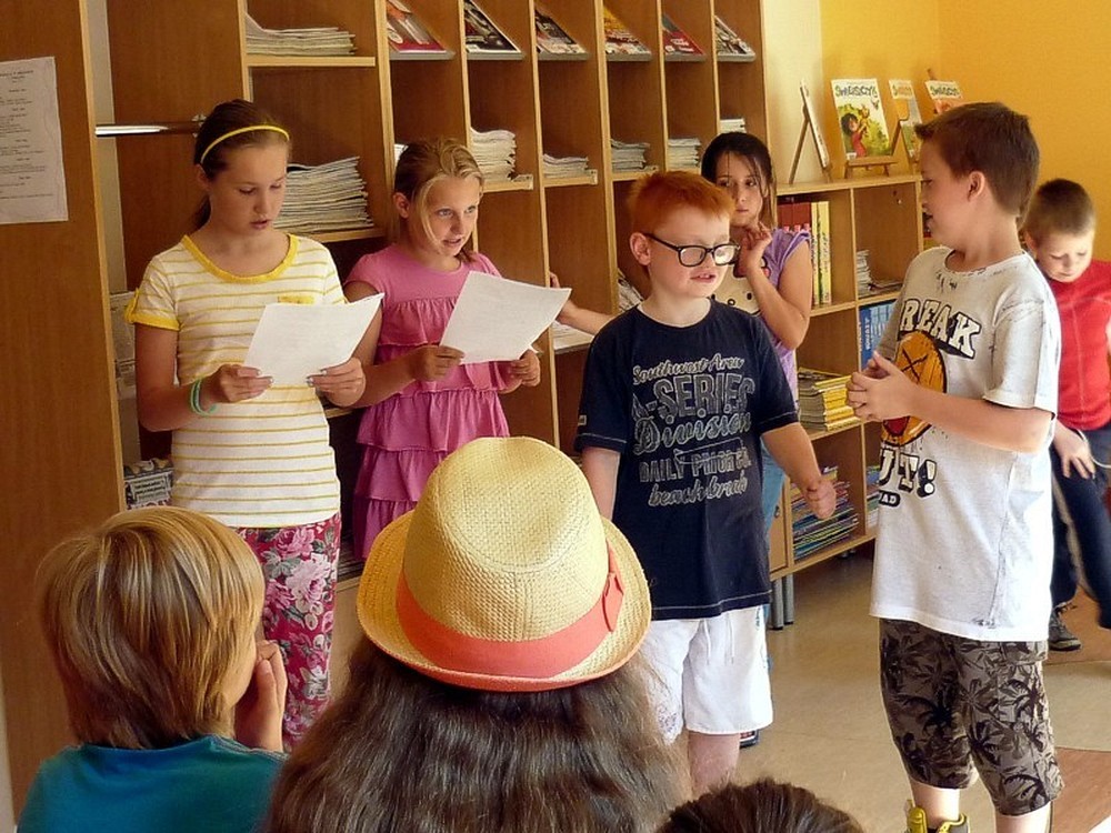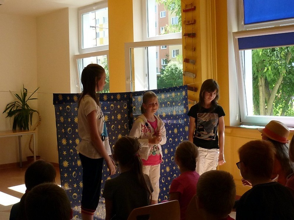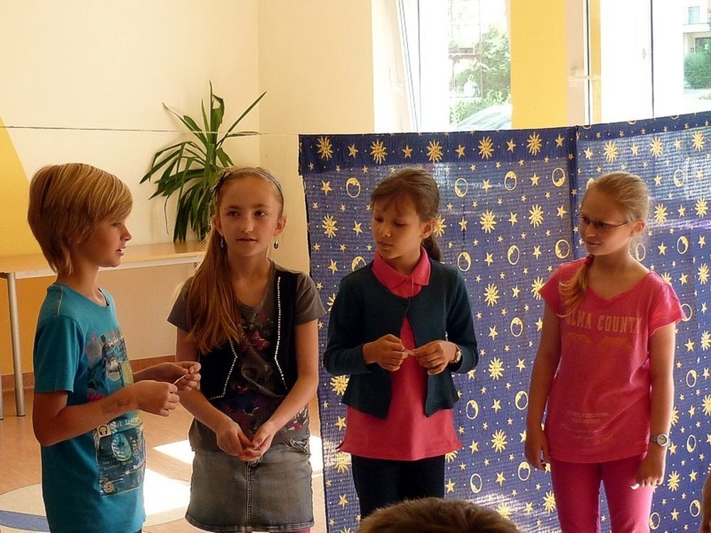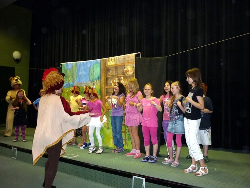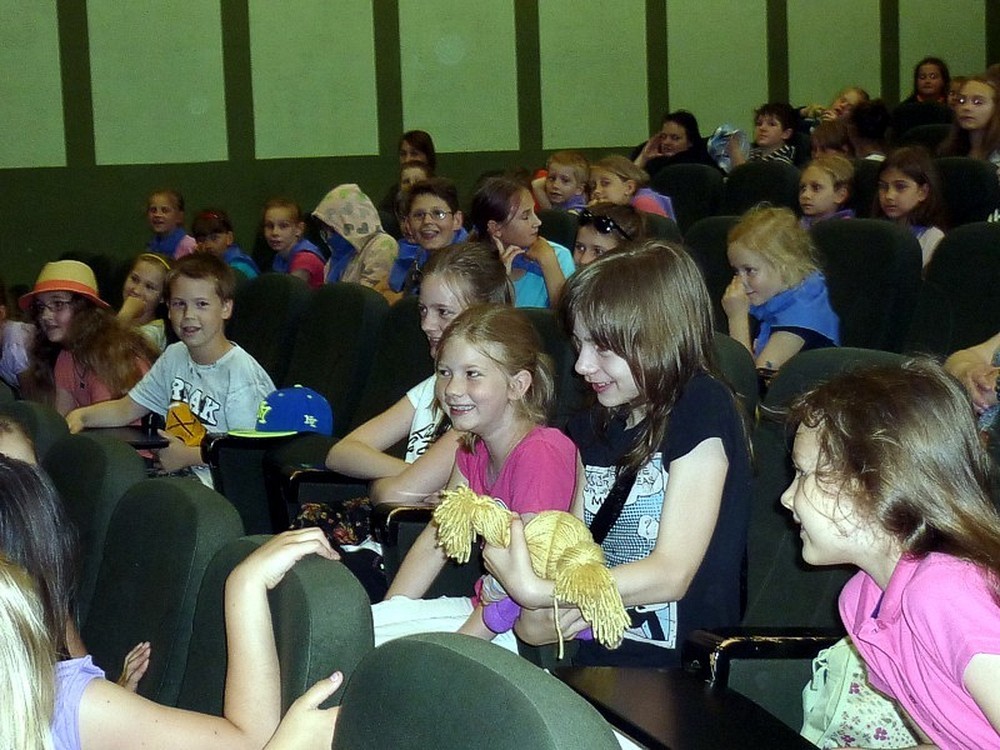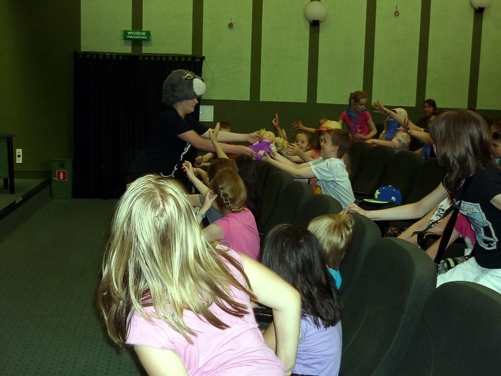 Dziś - 3 lipca - było kulturalnie i... teatralnie! Najpierw "amatorsko" rozpracowywaliśmy przygotowane scenariusze, by później przy głośnym aplauzie, wystawić krótkie scenki. Po zakończeniu wyciągnęłyśmy WNIOSEK! - Mamy talenty! Oj, mamy! Niewątpliwą atrakcją dnia było wyjście do sali kinowej KBP, gdzie mogliśmy oglądać i towarzyszyć na scenie profesjonalistom z krakowskiego teatru DUET w sztuce pod tytułem "Regsio".