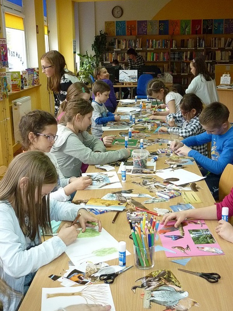 WSZYSTKO O PTAKACH - tak najogólniej można podsumować spotkanie MOLIKÓW książkowych, które miało miejsce w piątkowe popołudnie 15 kwietnia. Ciekawostki o skrzydlatych zwierzętach, przegląd ptasiej literatury i ptasia lista przebojów - wypełniły część edukacyjną spotkania. A po niej - rozpoczęły się zajęcia plastyczne ph. PTASI COLAGE, których efekty możecie podziwiać w galerii (poniżej).
