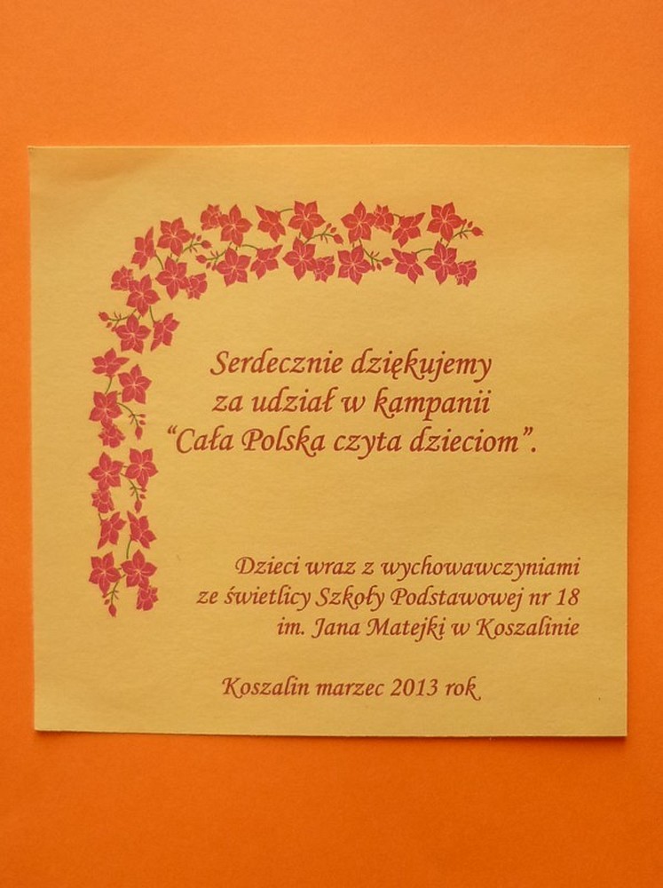 Dnia 14 marca 2013 r. wzięłyśmy udział w akcji "Cała Polska czyta dzieciom" na zaproszenie nauczycielek ze Szkoły Podstawowej nr 18 w Koszalinie.