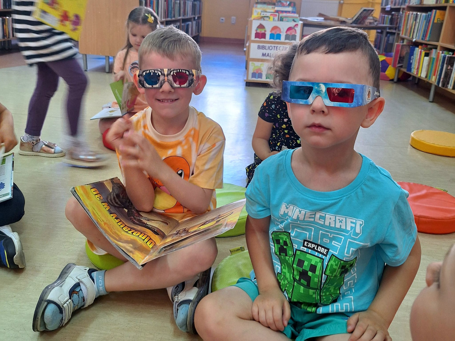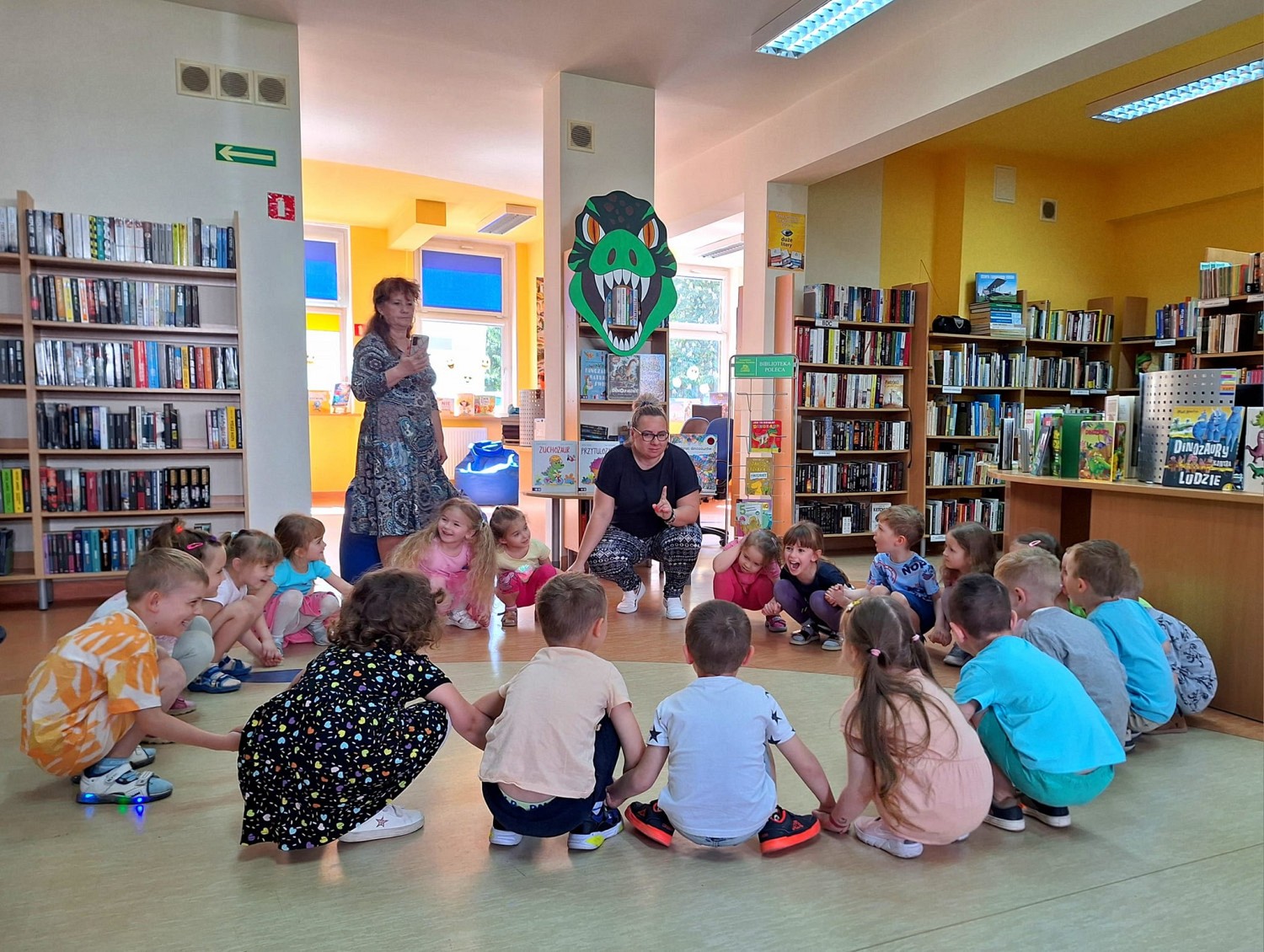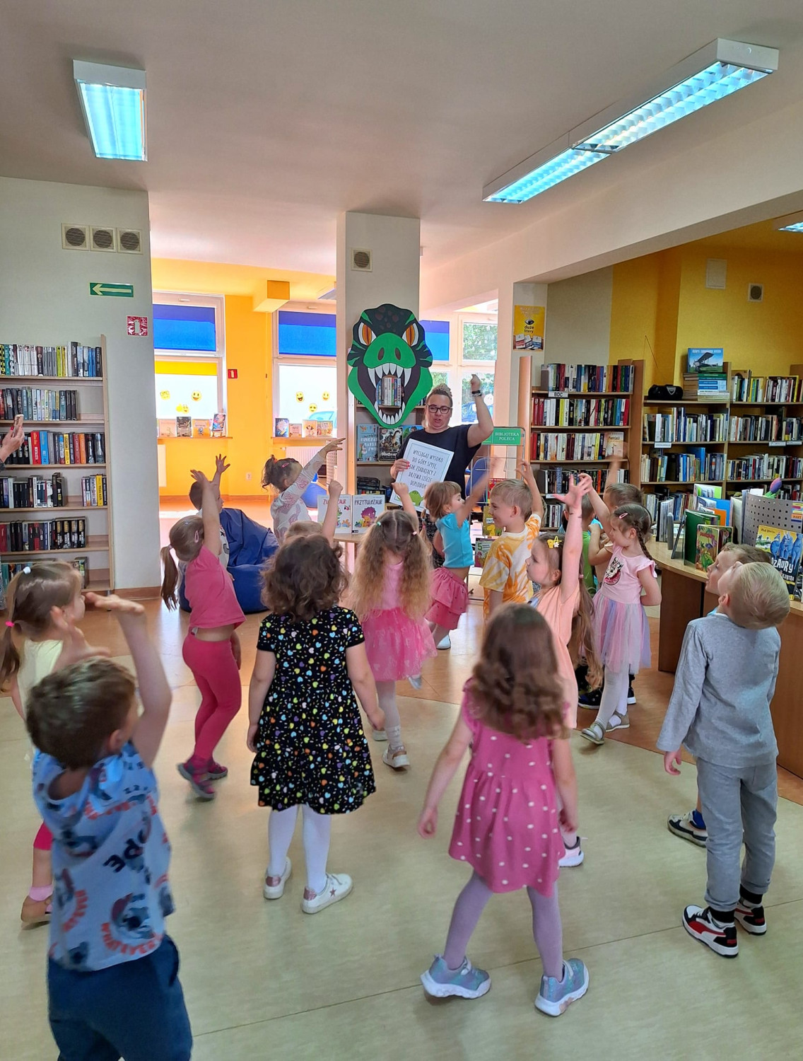 Tydzień bibliotek kończymy w towarzystwie przesympatycznych "Motylków" z Przedszkola nr 15, z którymi wyruszyliśmy do prehistorycznej KRAINY DINOZAURÓW Podczas naszej wyprawy napotkaliśmy przeróżne stworzenia, te roślino i mięsożerne , chowaliśmy się przed groźnym T-rexem , lataliśmy niczym pterodaktyle oraz zrywaliśmy liście jak słynne diplodoki Ufff, działo się! Nasza biblioteka jest prawdziwym rajem dla "poszukiwaczy" dinozaurowych przygód