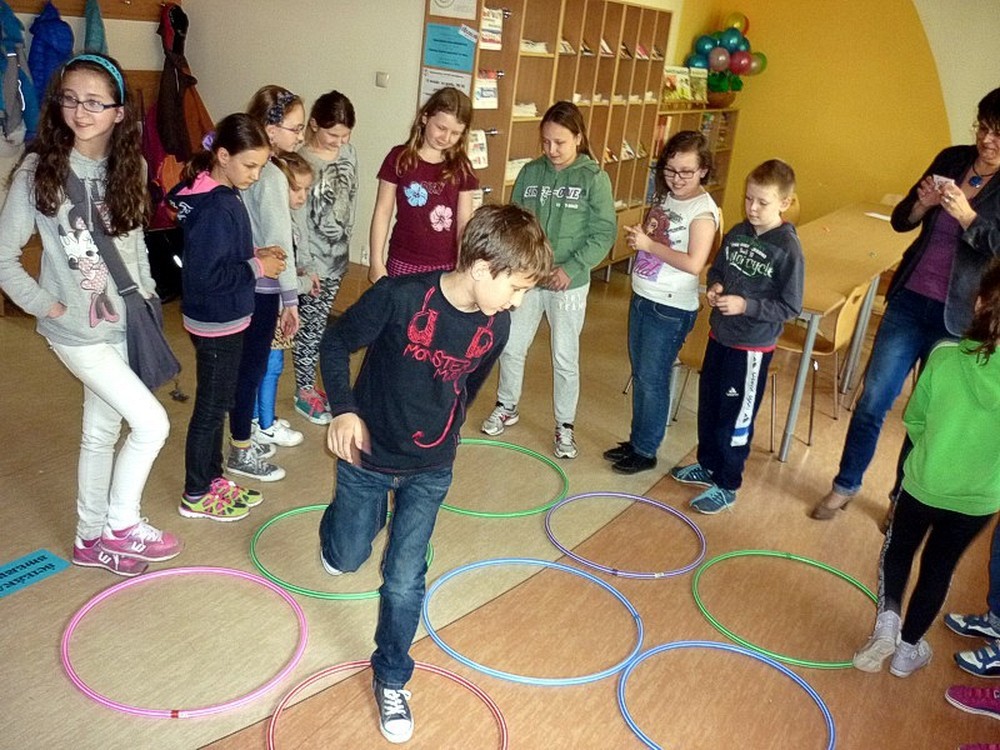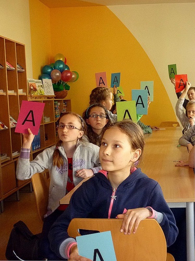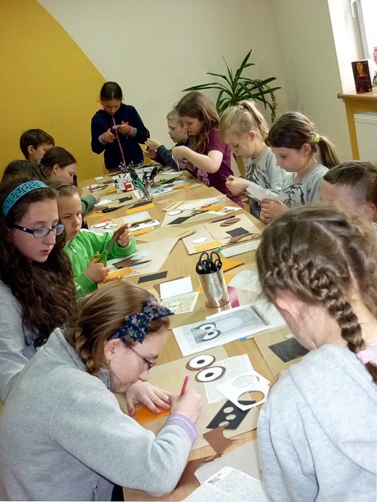 Po południu - 8 maja - przybyły do nas MOLIKI książkowe, na spotkanie z bohaterami komiksów - pod tajemniczym hasłem COMIC-BOOK. Działo się tak wiele... pojedynek na ołówki (rysowaliśmy Obelixa), konkurs na najgorszy dowcip z nagrodą "Puchar za Suchar", tworzenie dymków do smerfowych ilustracji, szukanie superbohaterów z komiksów (ukrytych gdzieś na sali). To były tylko niektóre z atrakcji piątkowego spotkania. Nasz "zlot" zakończyliśmy - jak zwykle - zabawą plastyczną.
