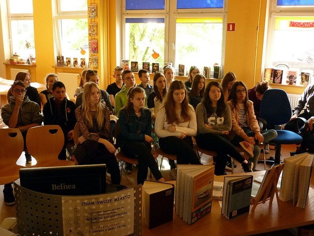 Dnia 17 maja rozpoczęliśmy cykl spotkań okolicznościowych z uczniami klas pierwszych Gimnazjum nr 9 w Koszalinie. Ciekawostki z historii Koszalina, uzupełnione prezentacją multimedialną oraz wystawką książek, miały na celu rozbudzić zainteresowanie fascynującą przeszłością naszego miasta.