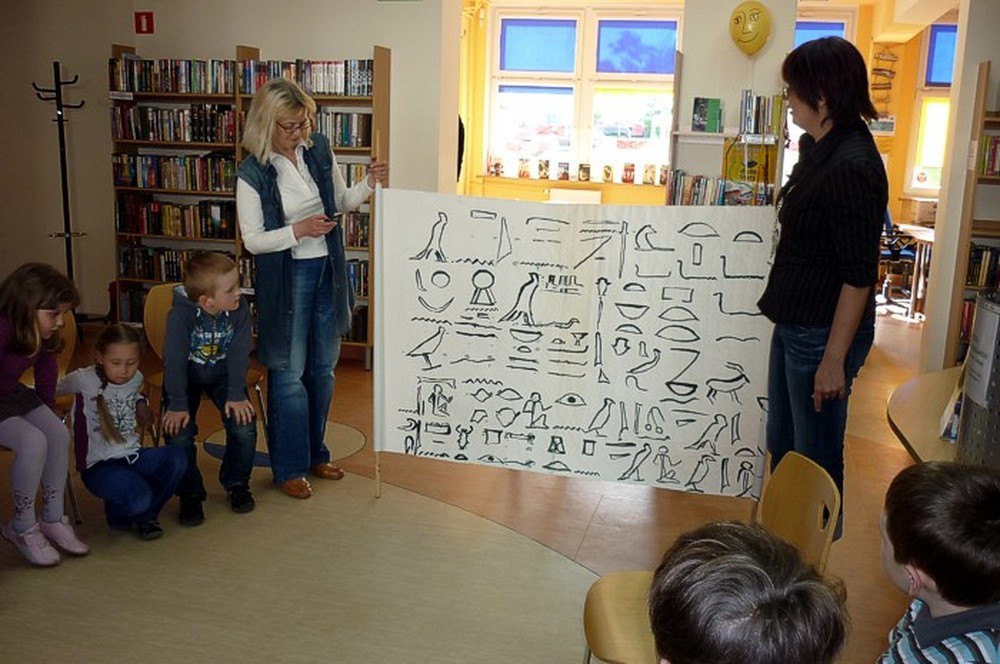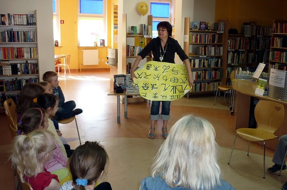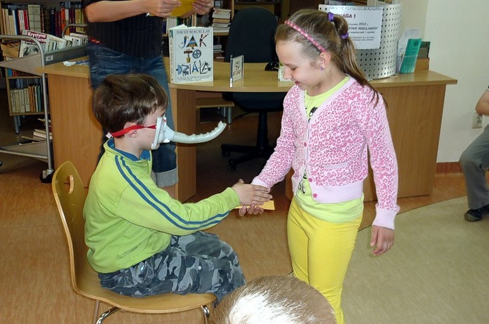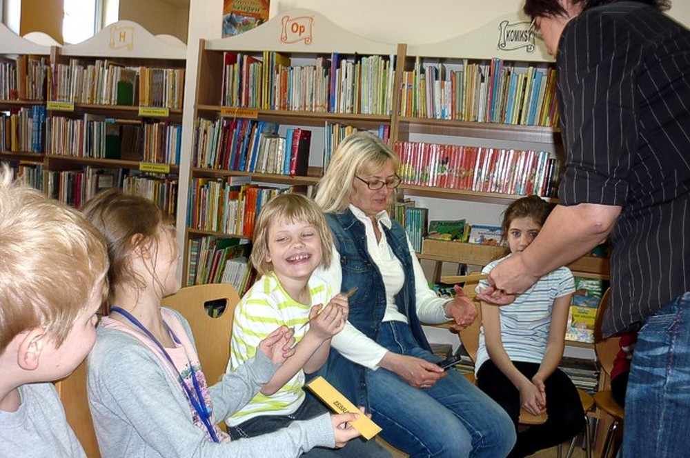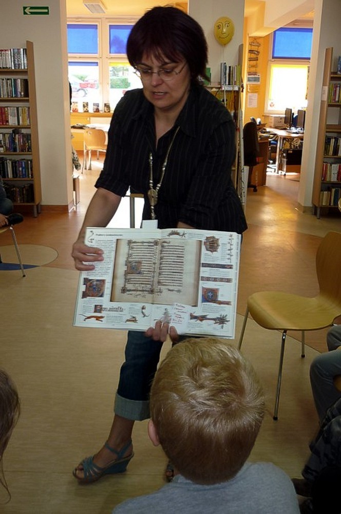 Pani Wiola w prosty i zabawny sposób przedstawiła historię książki i bibliotek. Dużą rolę odegrały atrakcyjne "historyczne" rekwizyty, które świetnie ilustrowały przekazywaną wiedzę.